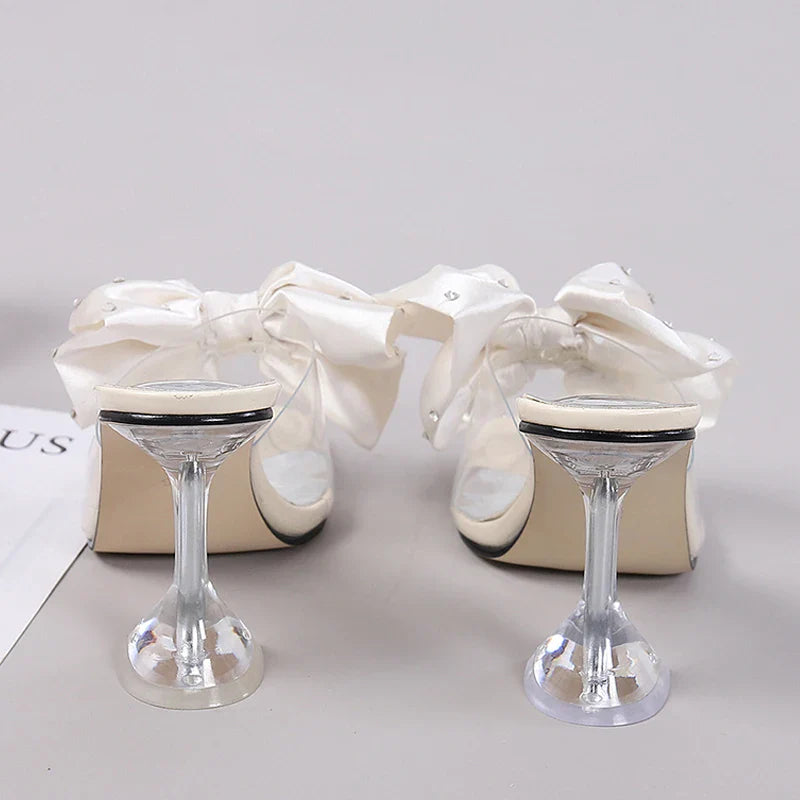 Crystal Bow PVC Transparent Heels - Open Toe Slides
