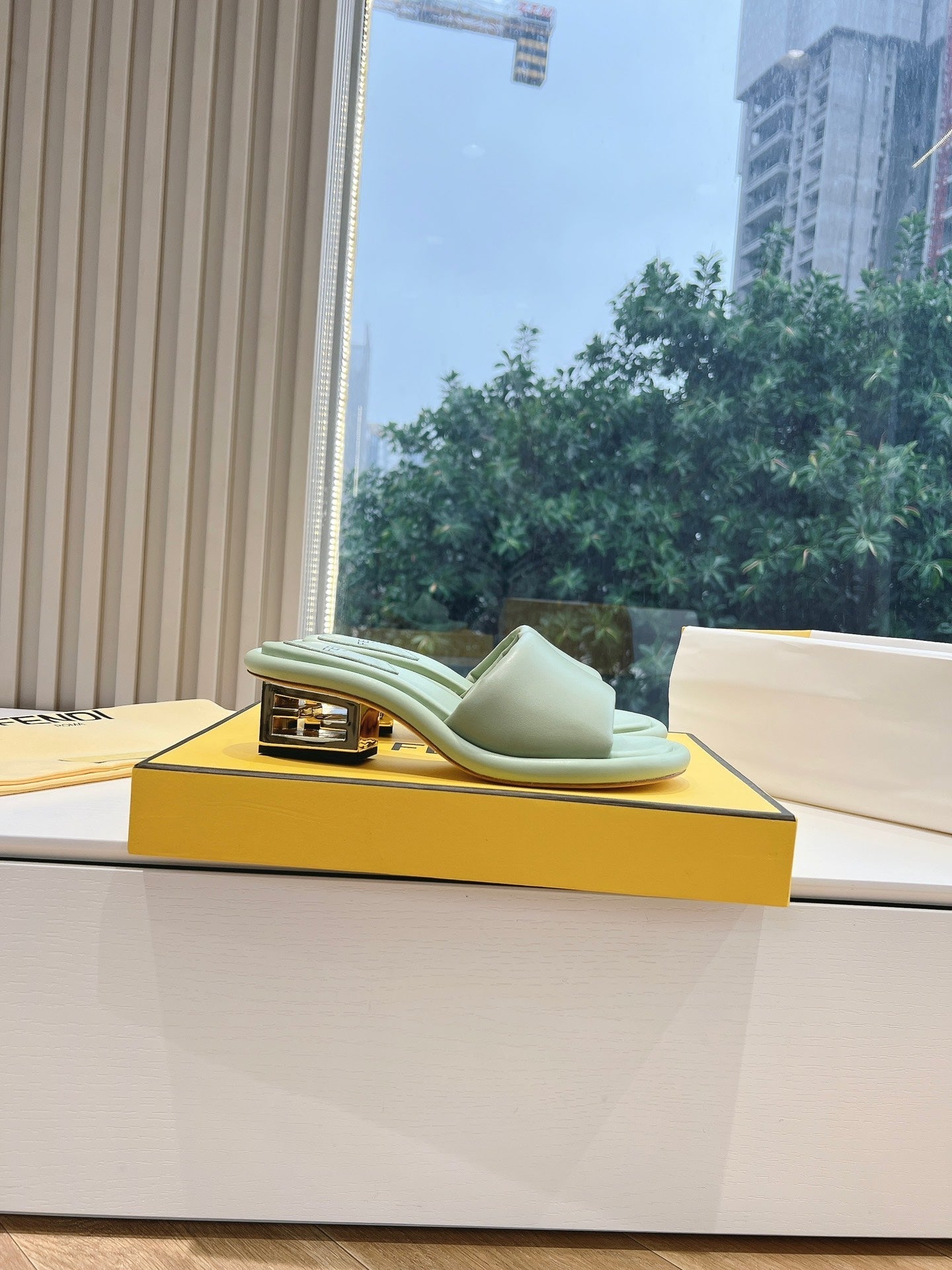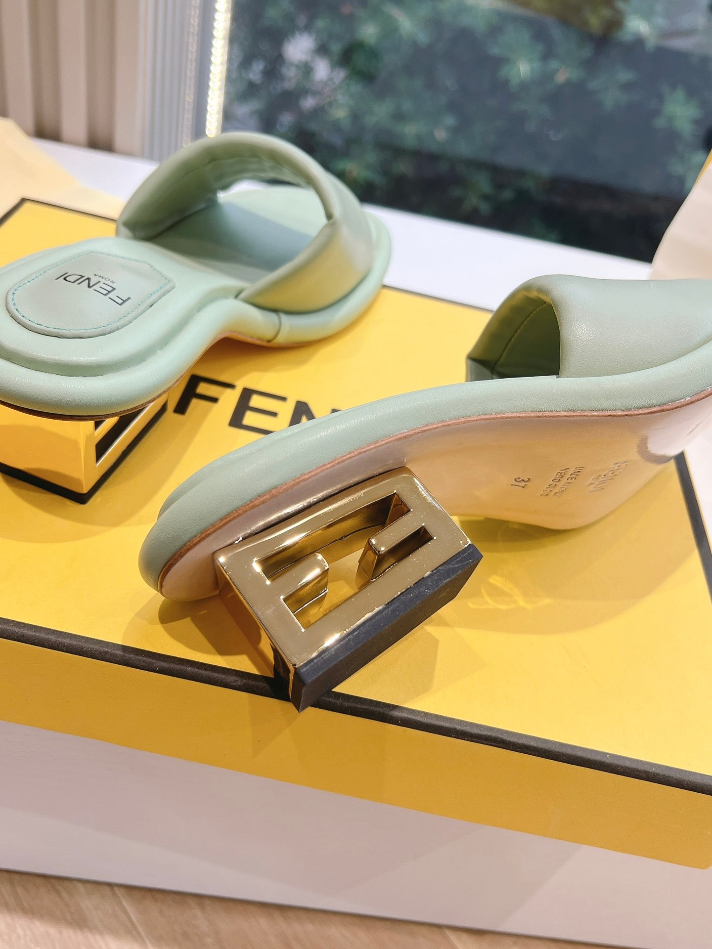 FF Baguette Slides Women 45 Nappa Leather Green