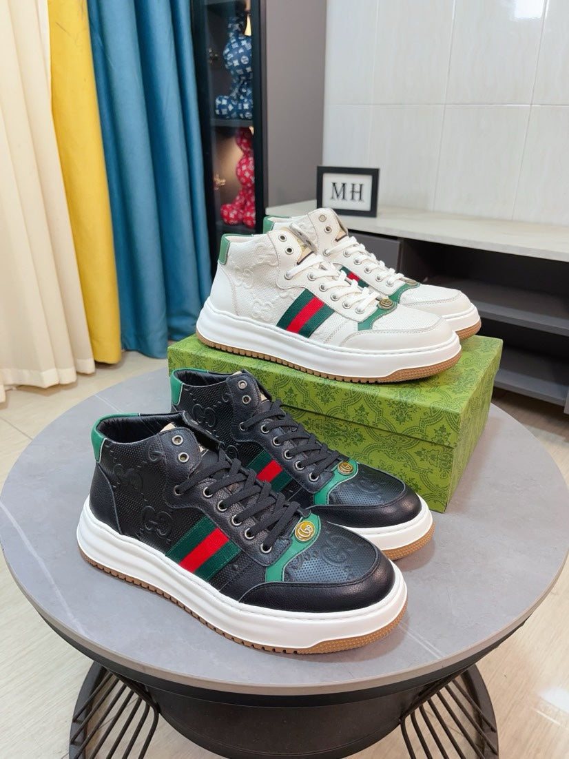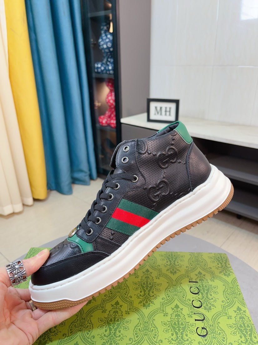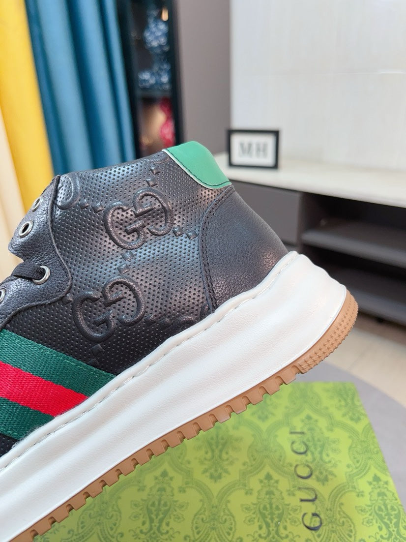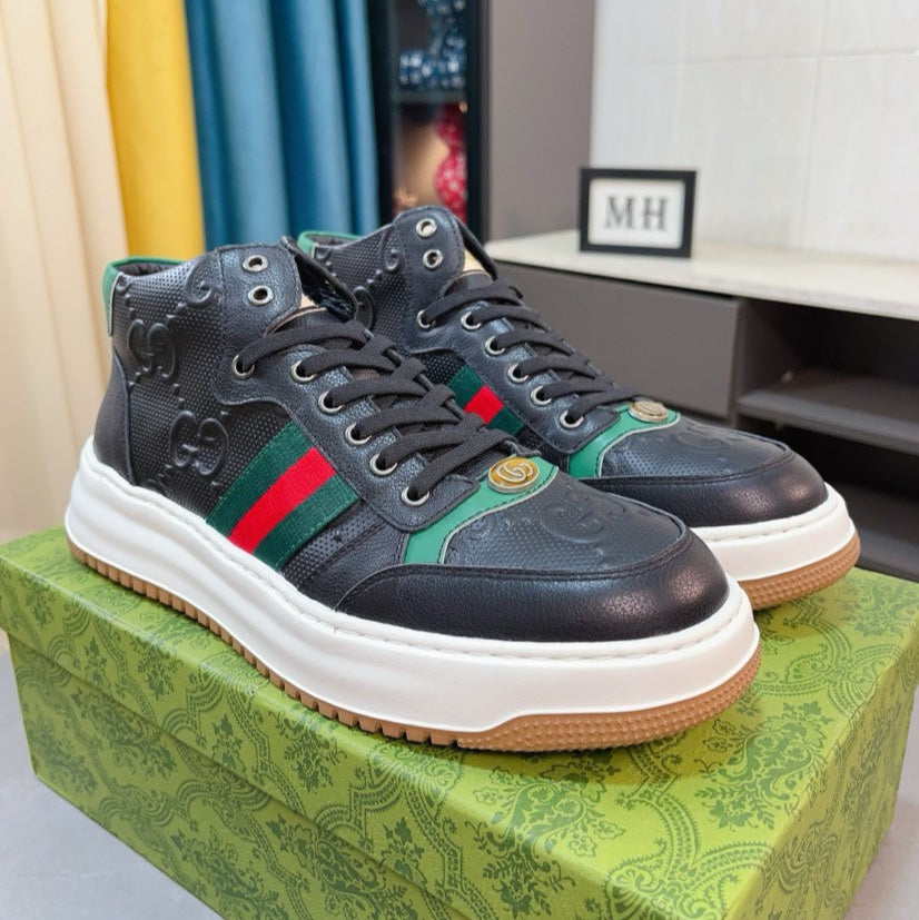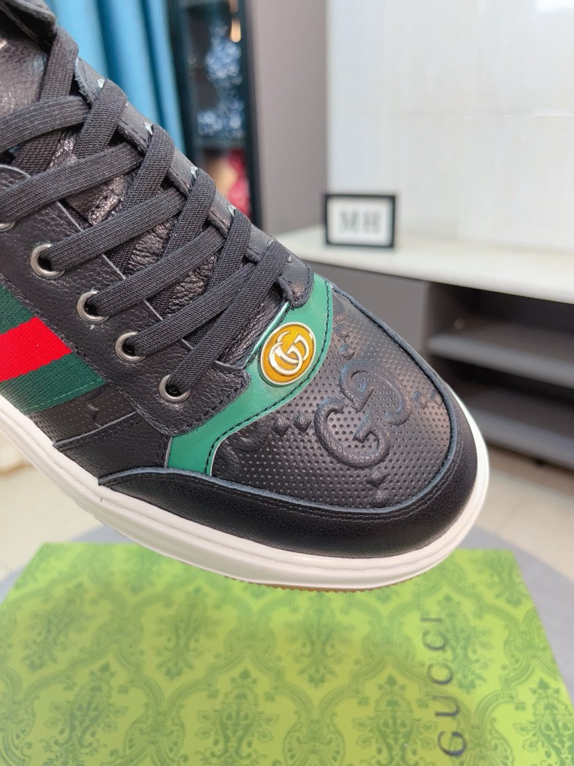 GG Men's Sneaker Black Embossed Cowhide 471066