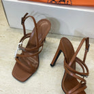 HM 26ss Kelly Sliver Buckle Sandals 95 Brown Calfskin 607166