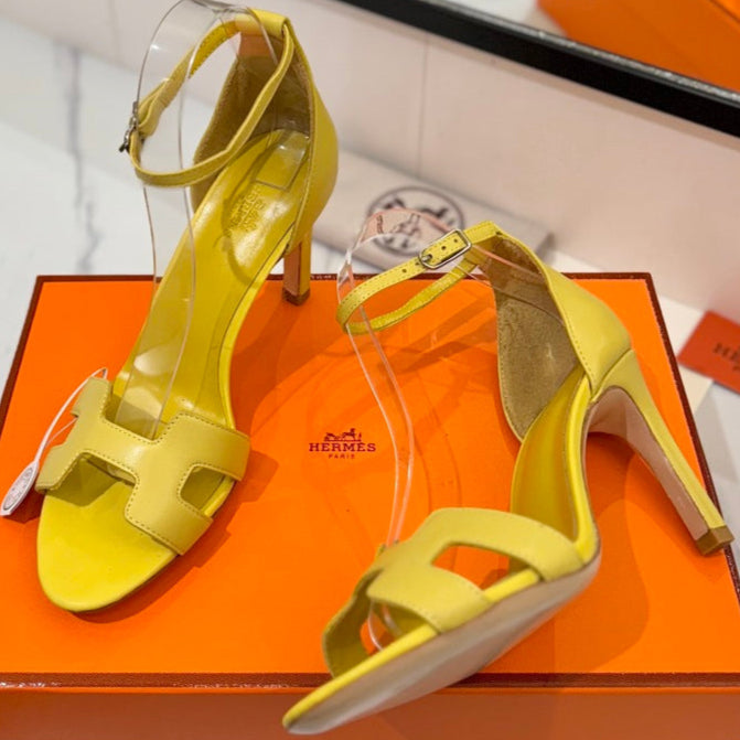 HM Joy 90mm Heeled Sandals Yellow Flat Cowhide 294924