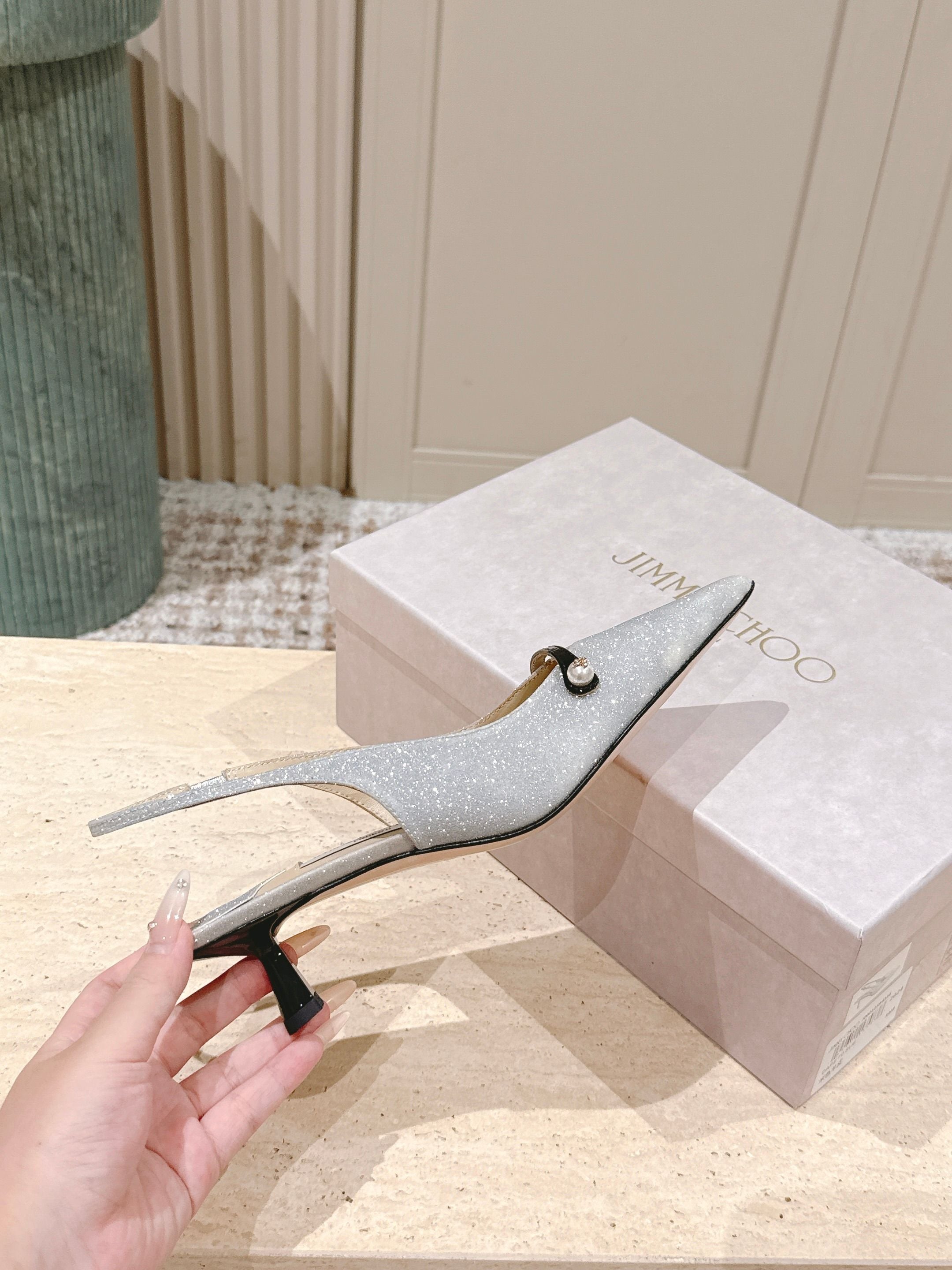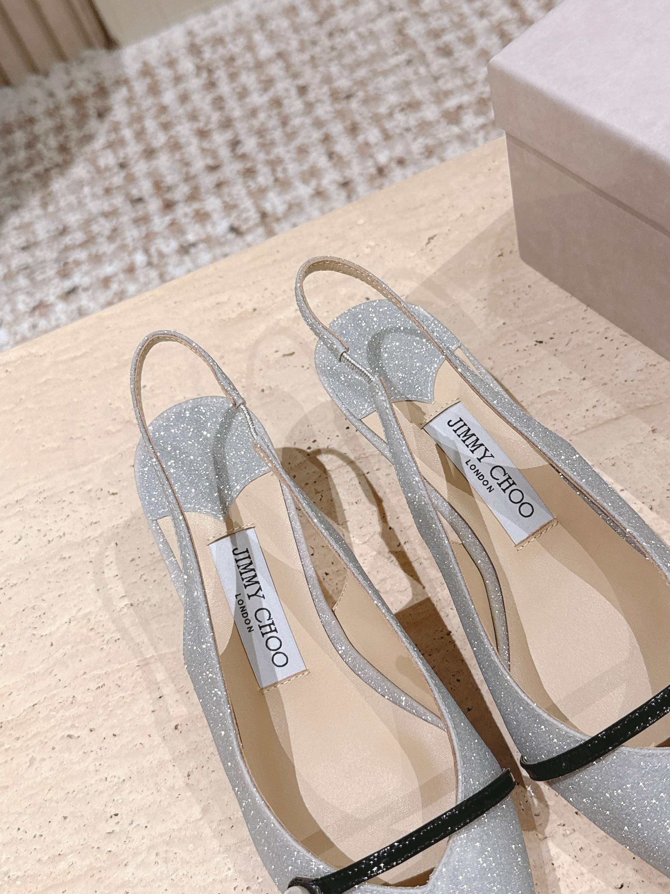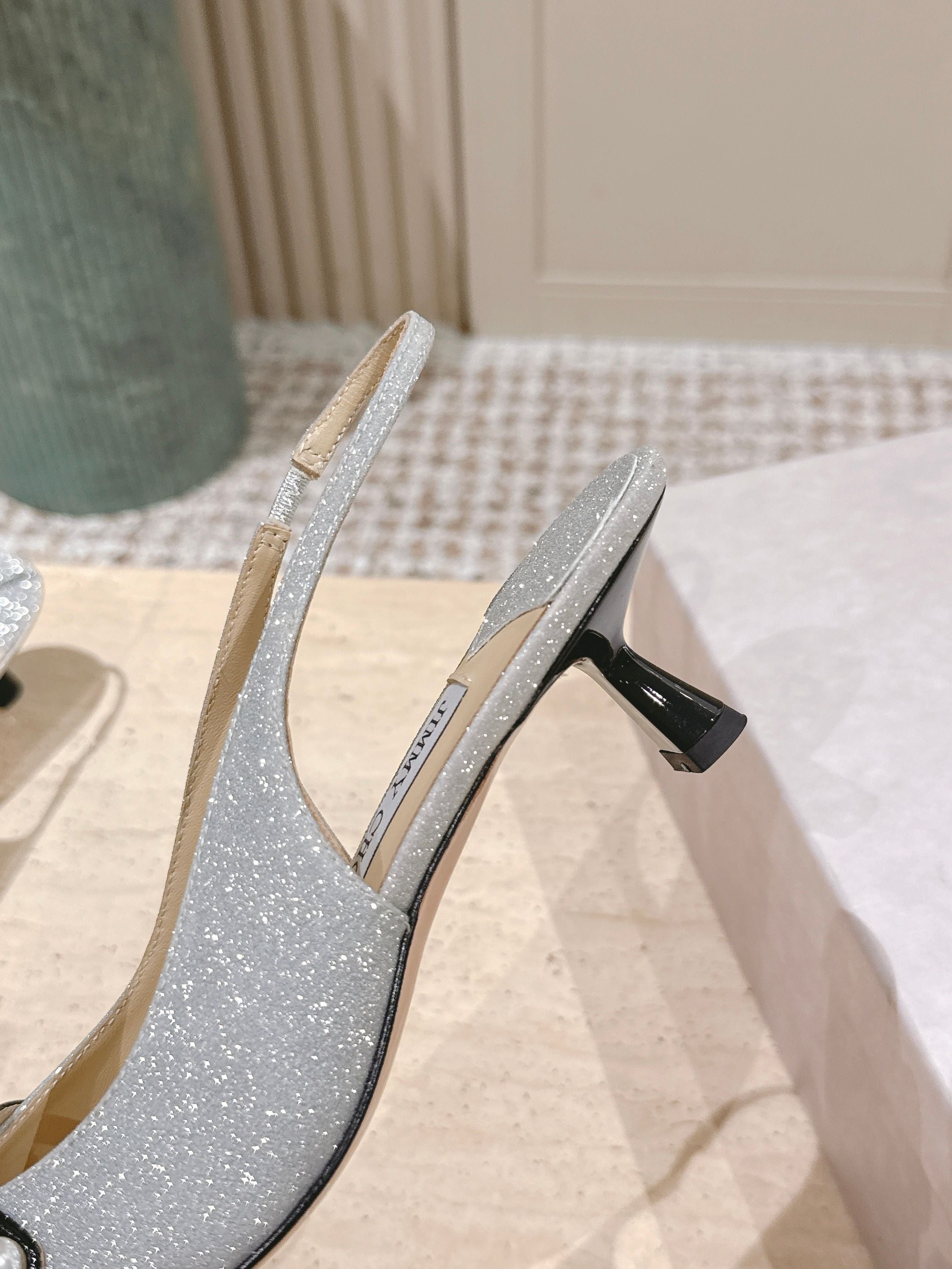 Jimmy 25 Amita Slingback 45mm Sliver Glitter & Patent Leather 431860