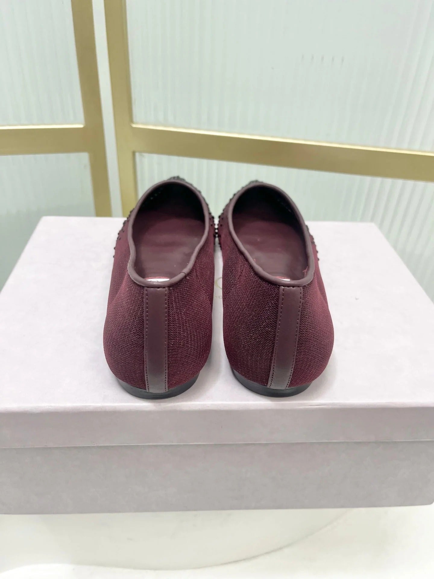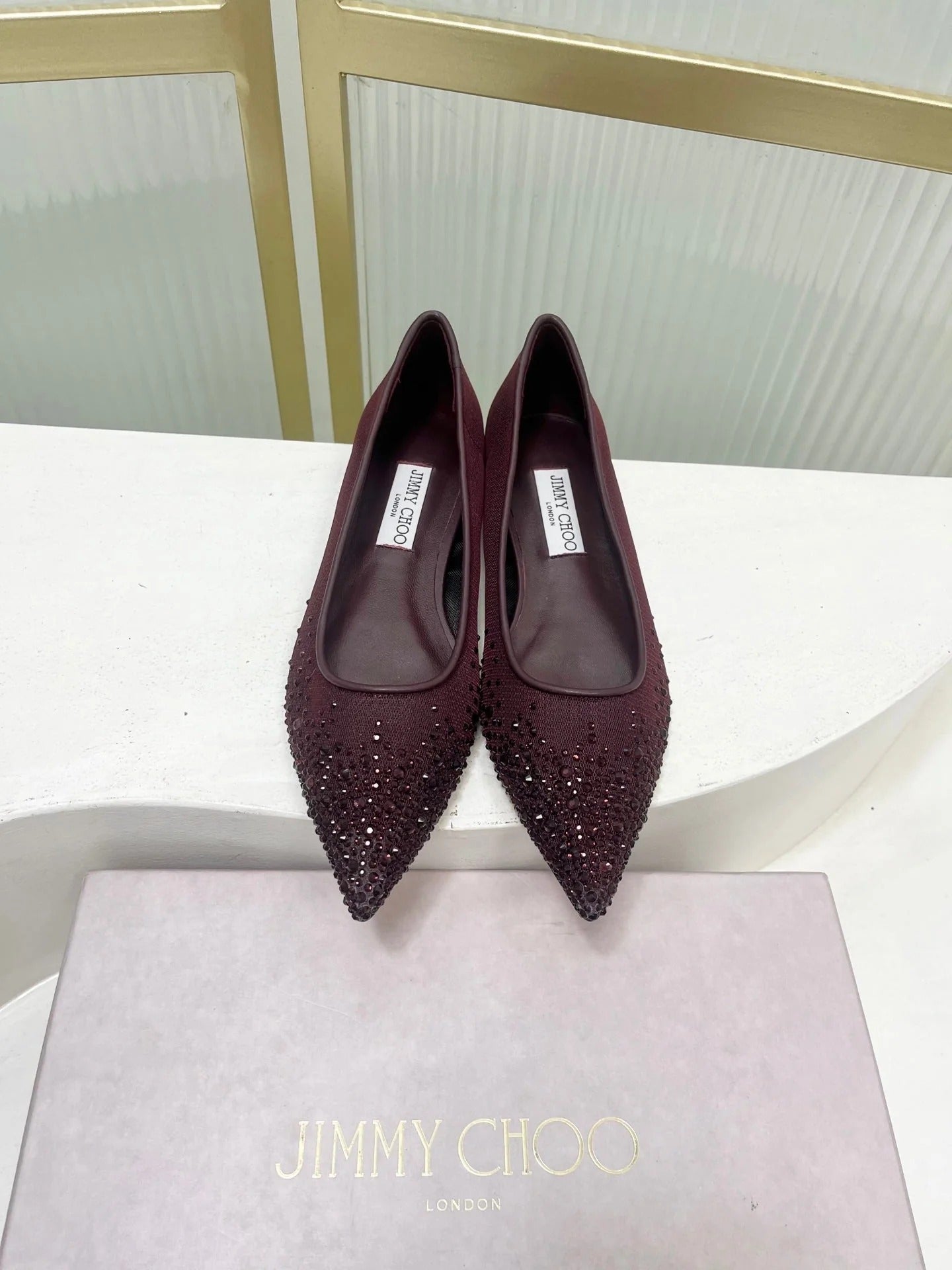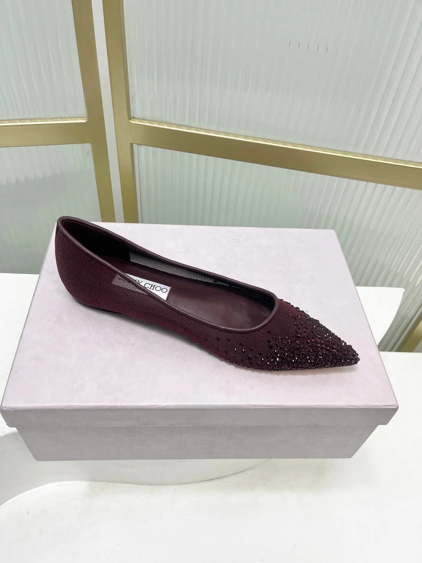 Jimmy 26s Ballet Flats Burgundy Rhinestones Mesh Sheepskin 605980