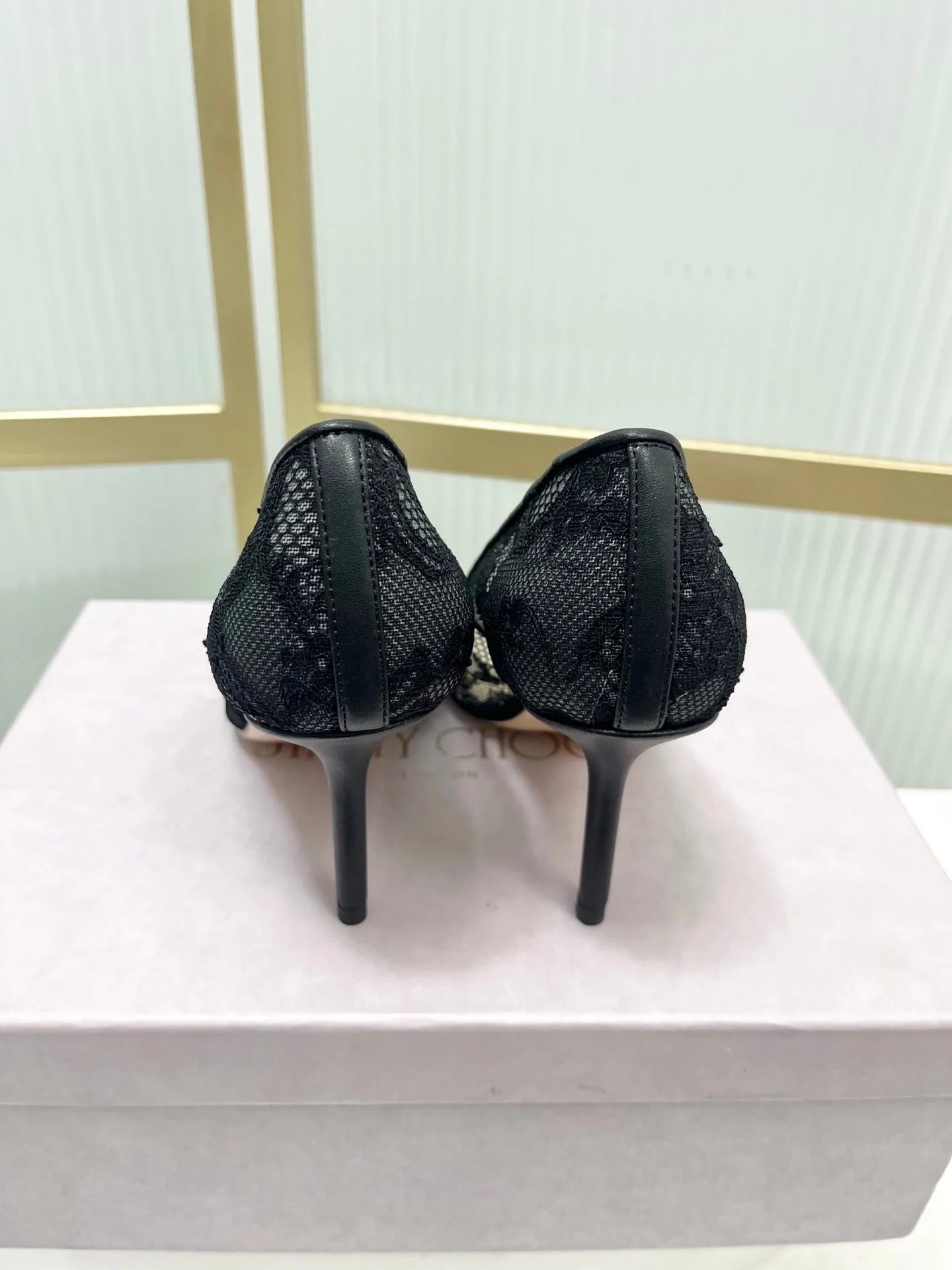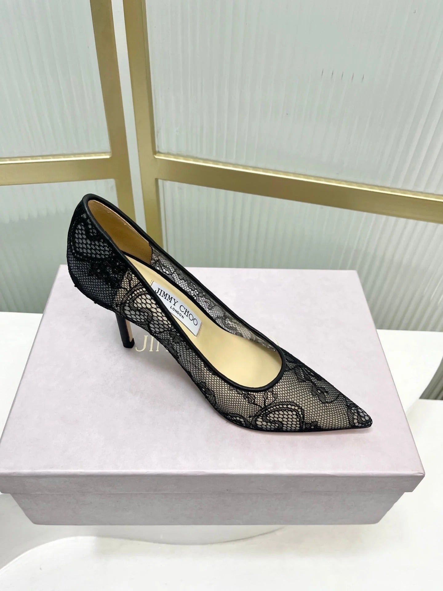 Jimmy 26s Heel Pump 85 Black Beige Lace Sheepskin 605953