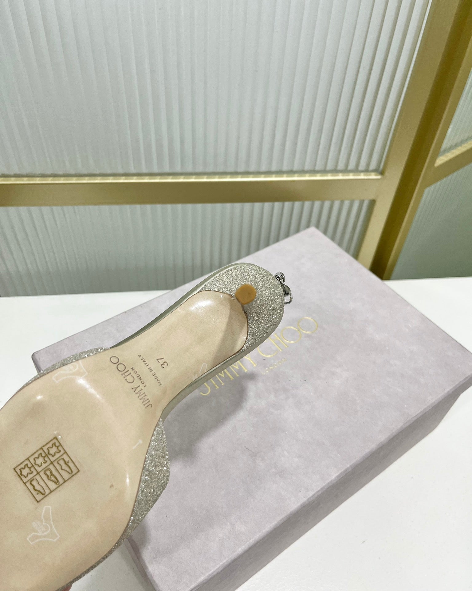 Jimmy Saeda Sandal 85 In Silver Satin With Glitt 587738