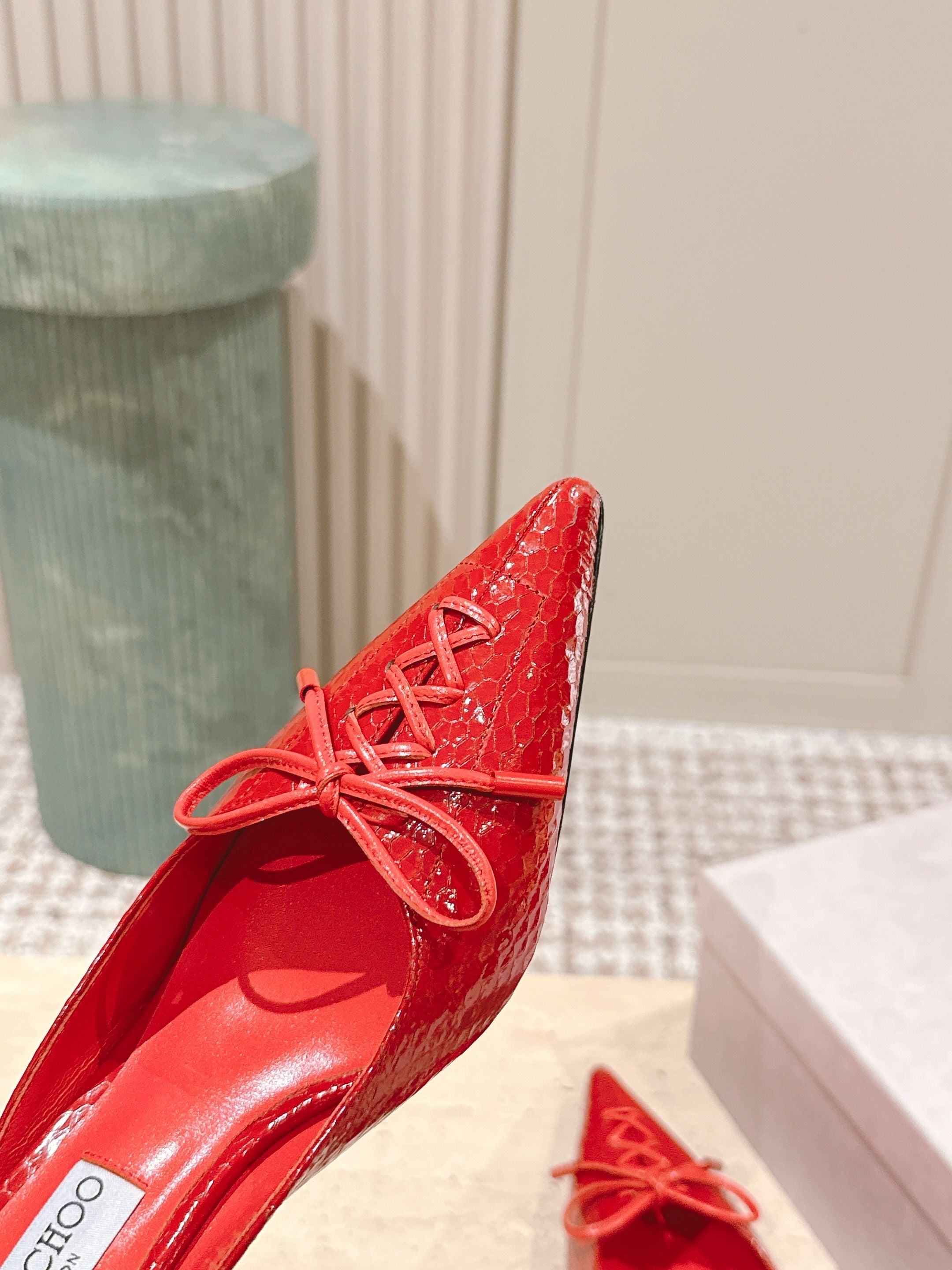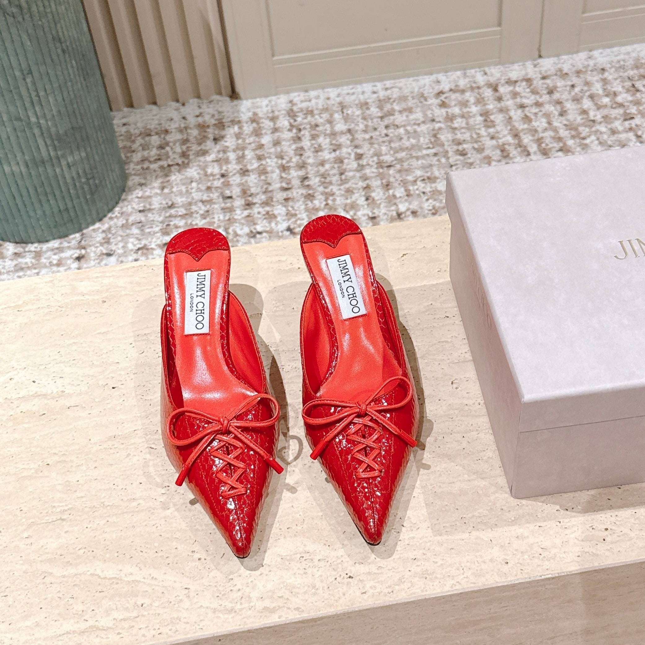 Jimmy Snake Embossed Scarlett Mule 50mm Bright Red Cowhide 431845