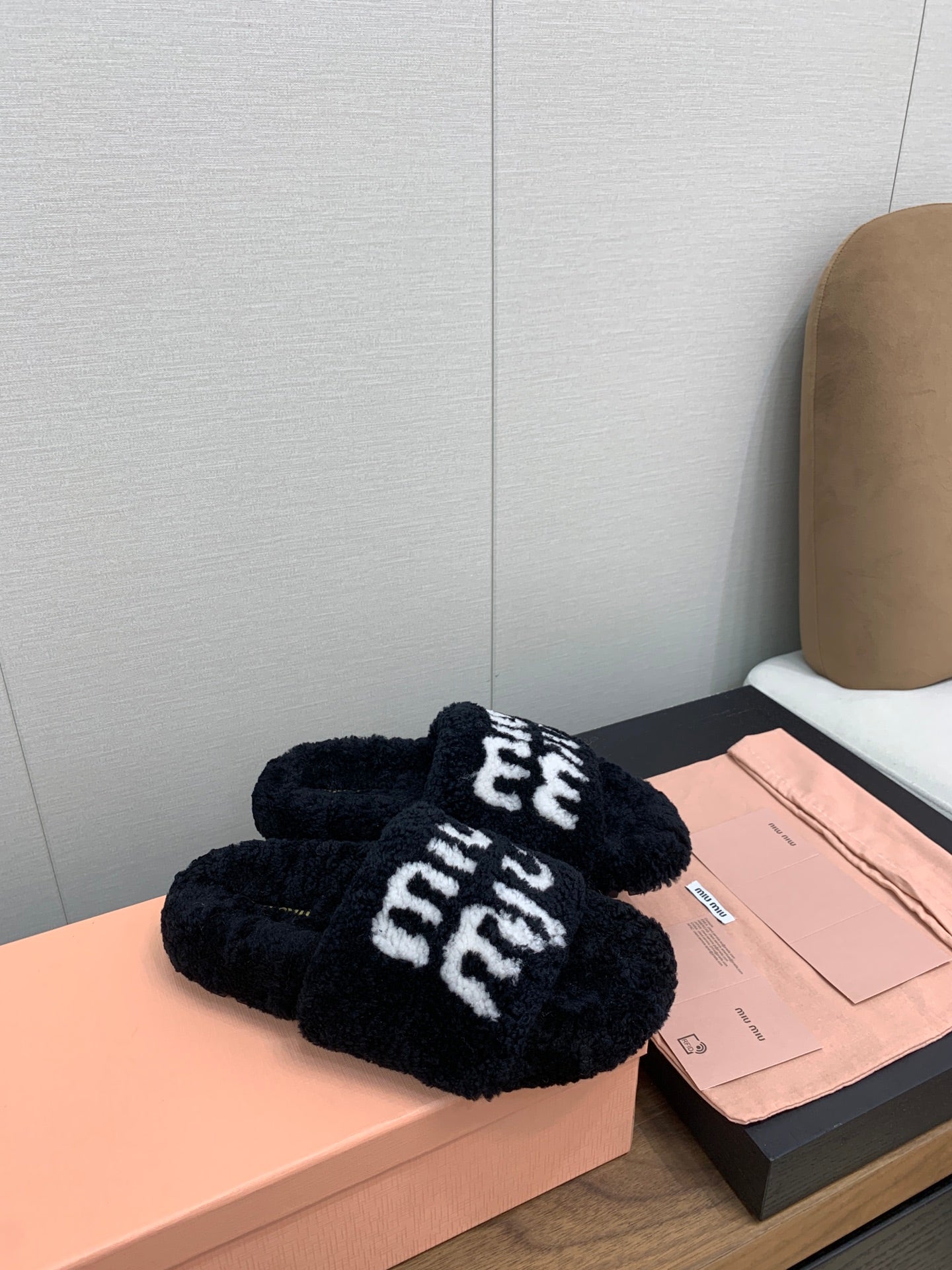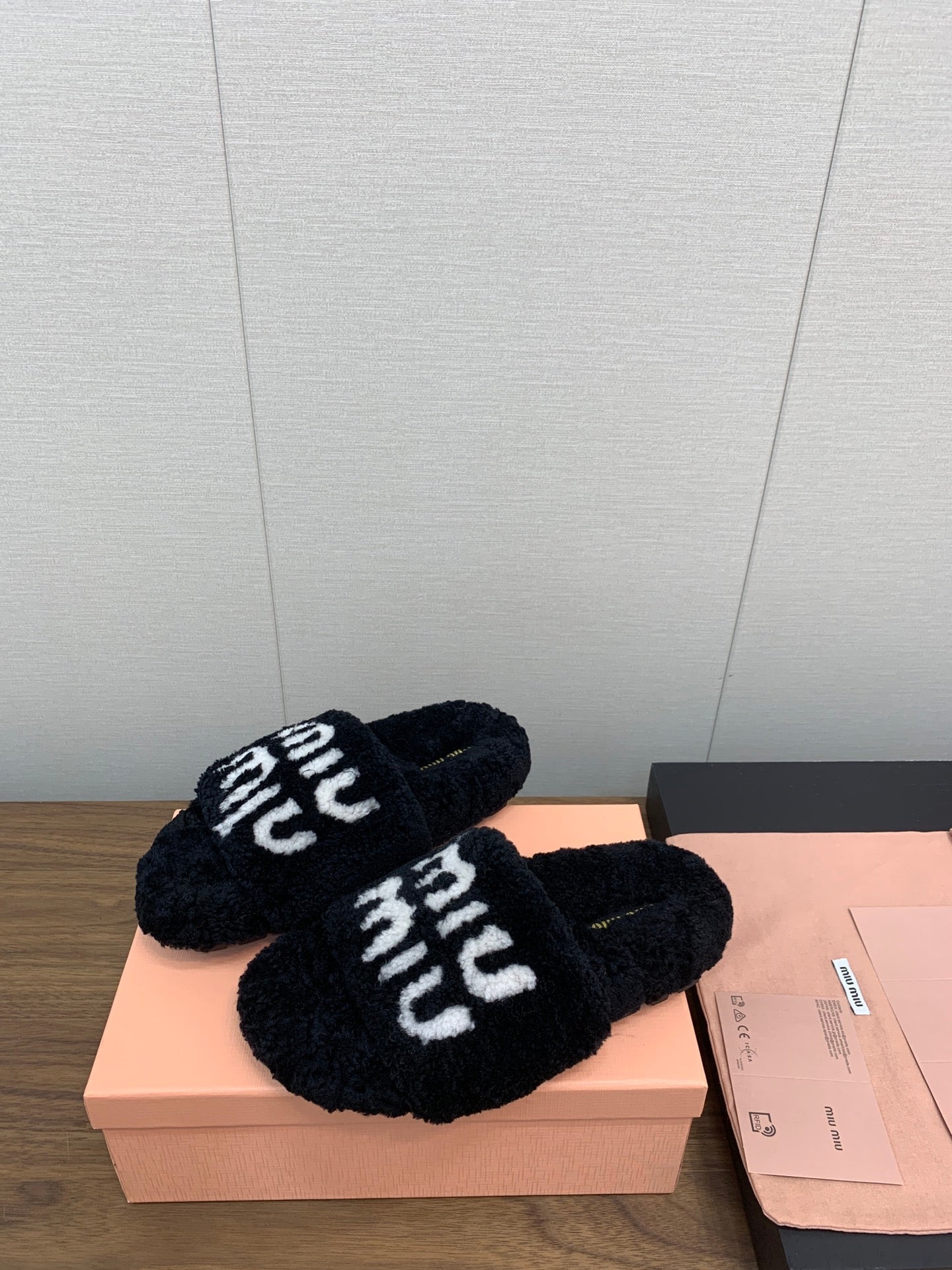 Miu slippers Black With White Text Pure Wool