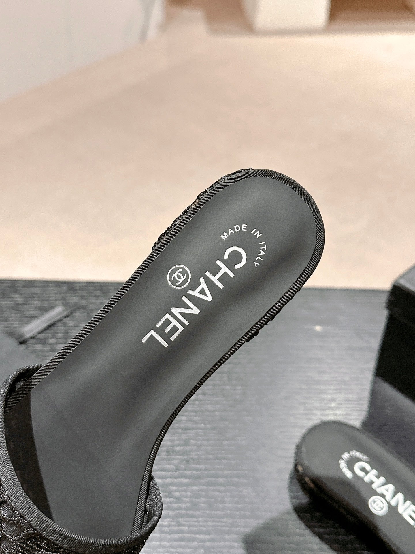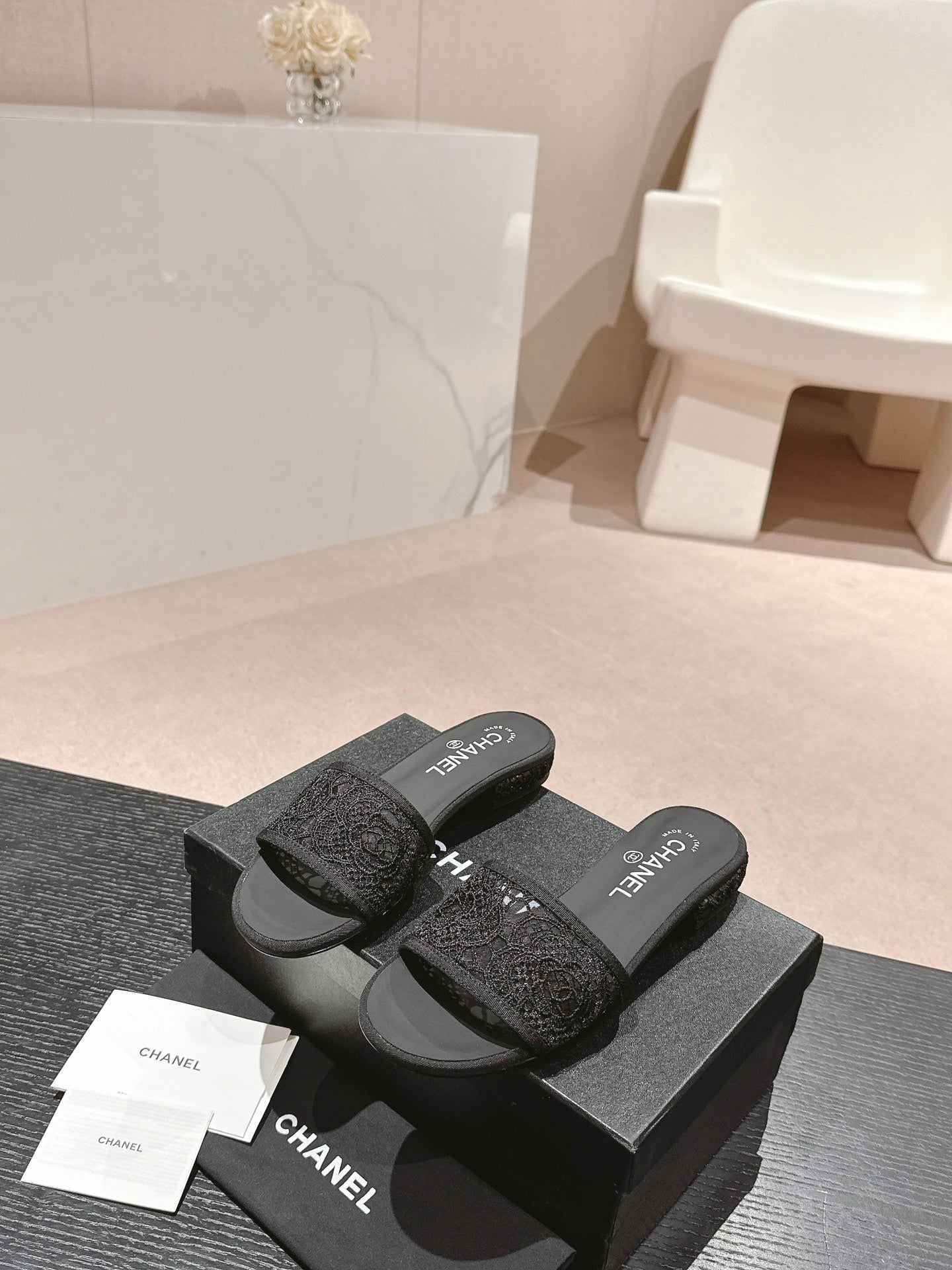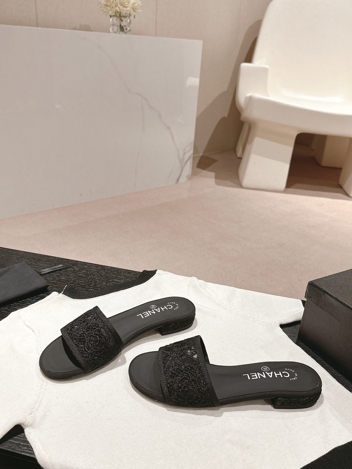 mule sandal black lace fabric