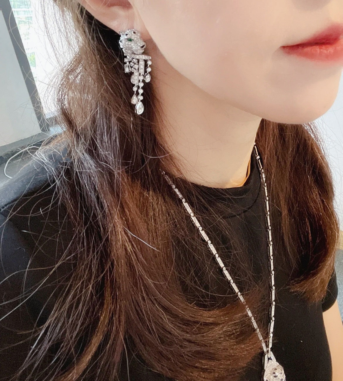 PANTHERE ONYX MALCHITE DIAMOND DROP EARRINGS