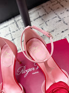 RV Rose Vivier Flower Sandal 10cm Pink Red Satin 617298