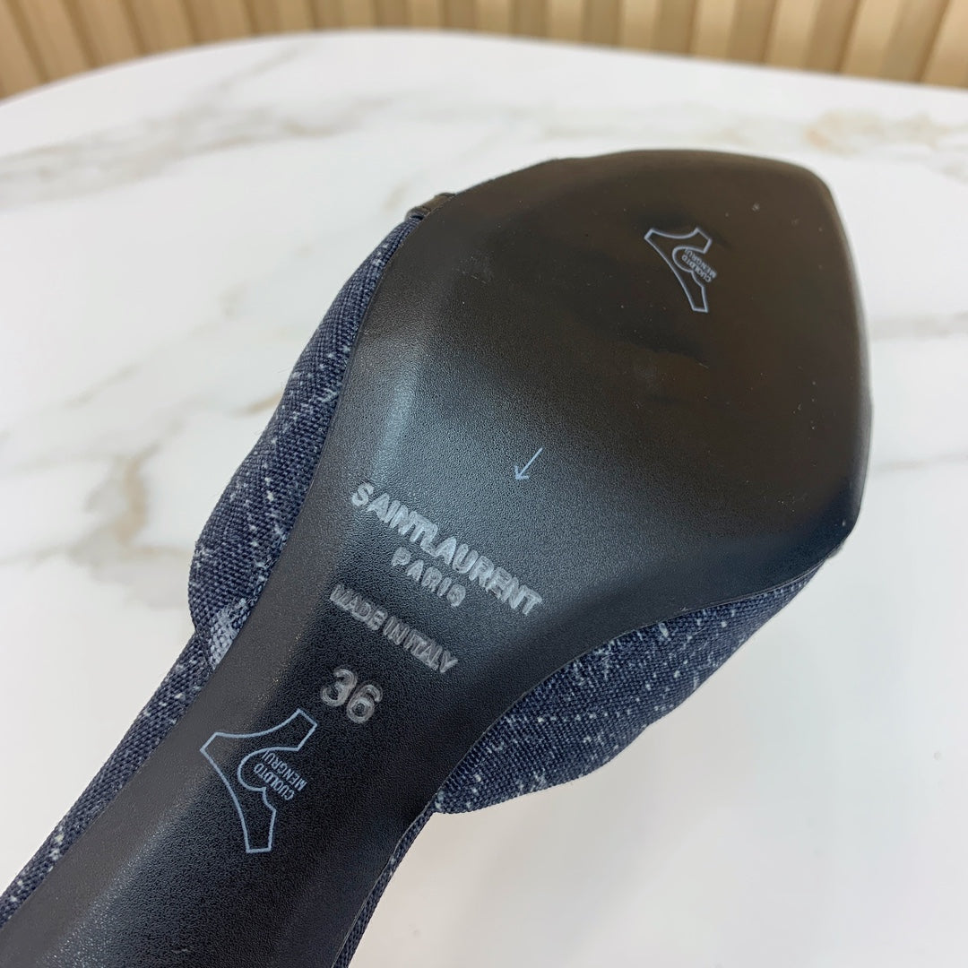 SL CHAIN ATTACH HEELED MULES INDIGO DENIM