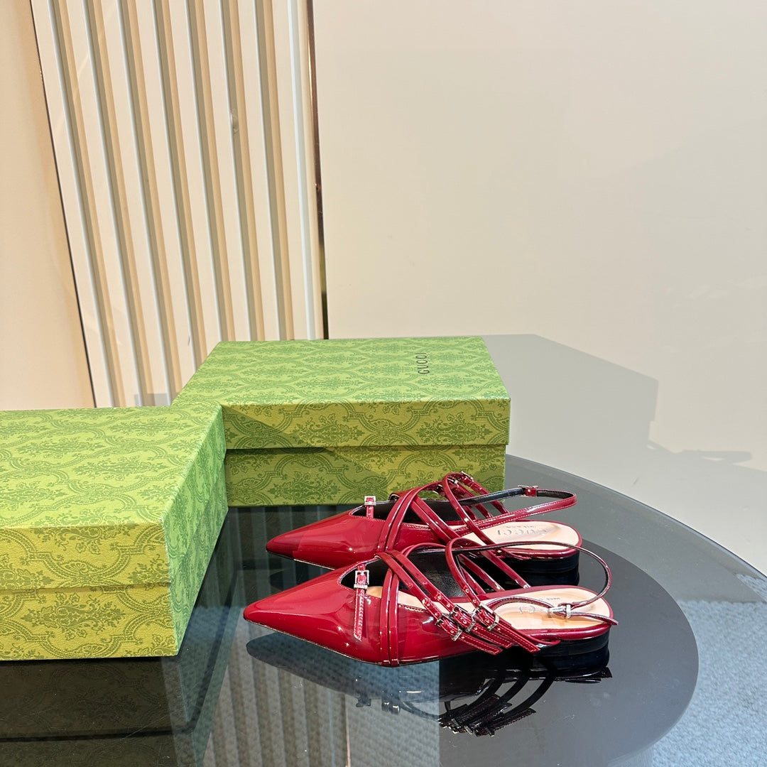 SLINGBACK CROSS STRAP IN CRIMSON RED CALFSKIN