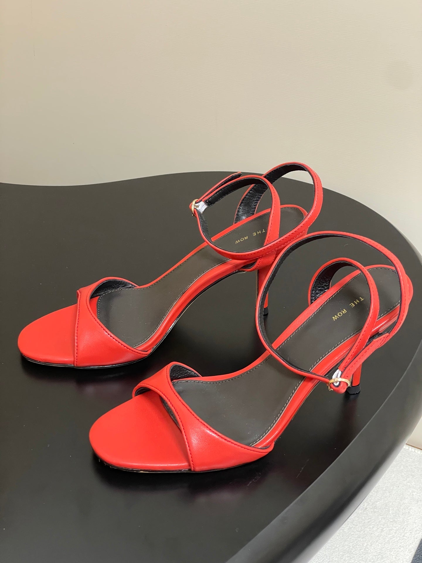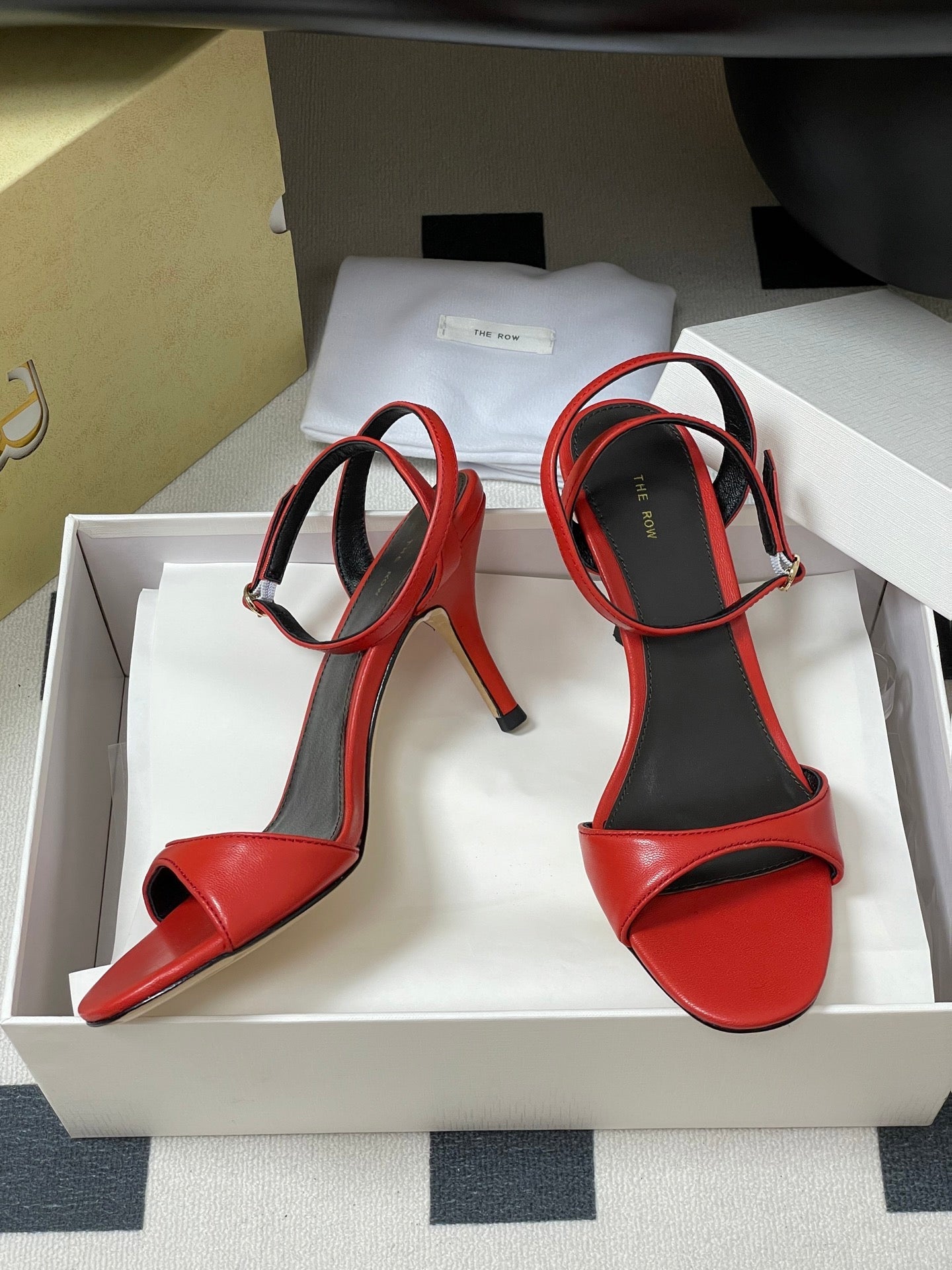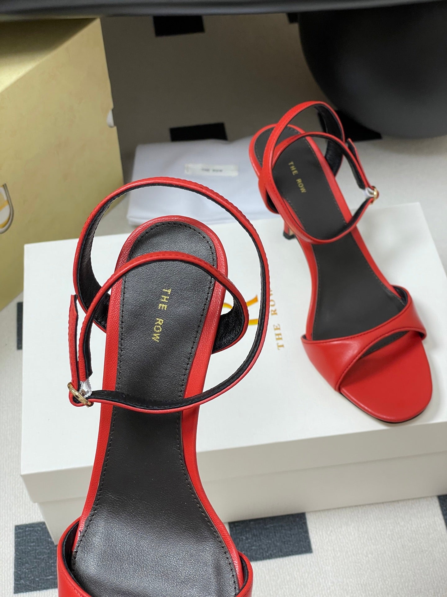 The Row 25S Strap High Heel Sandals 85mm Red Sheepskin 286190