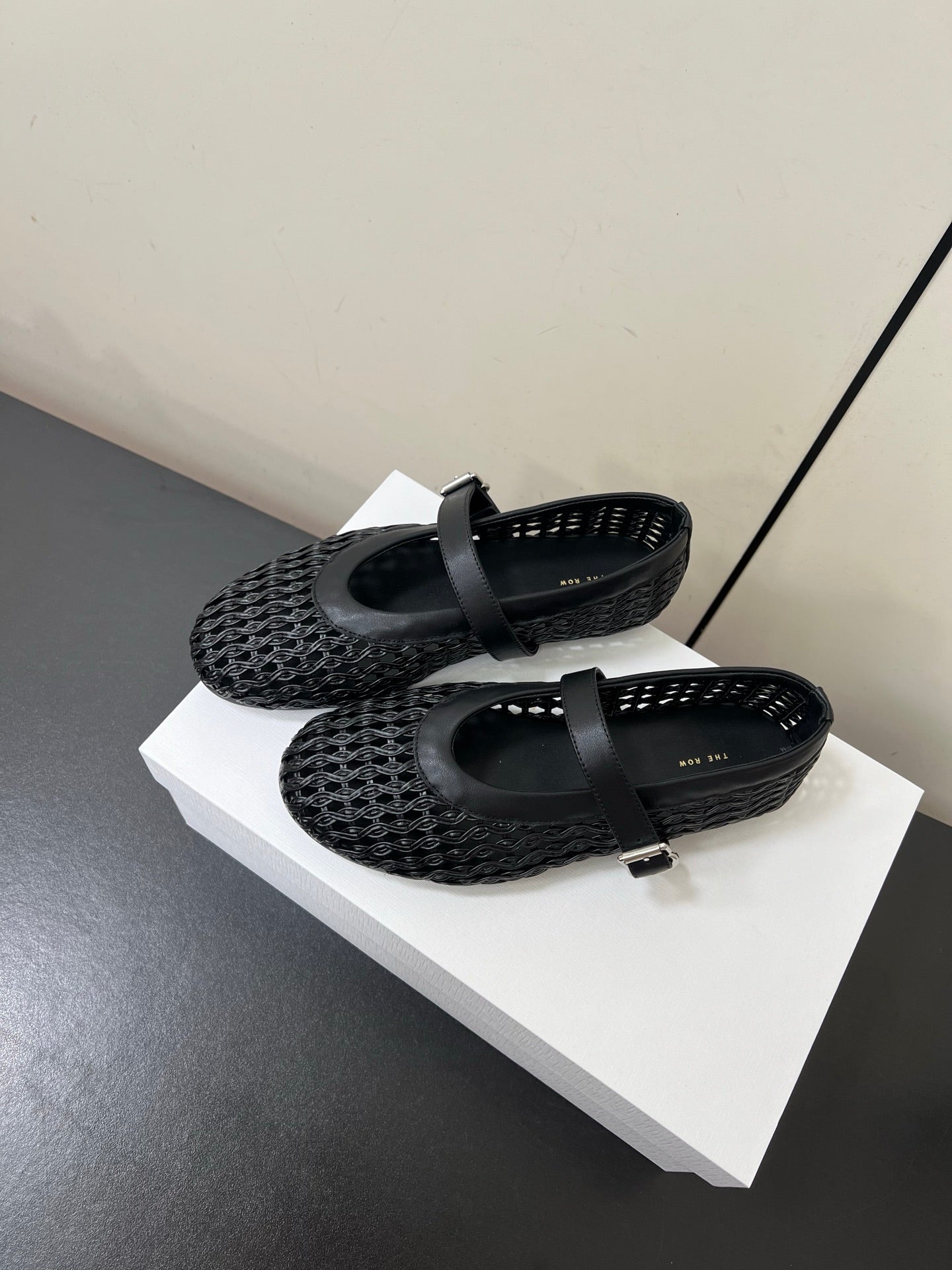 The Row 25ss Mary Jane Flat Black Mesh Cowhide 340043
