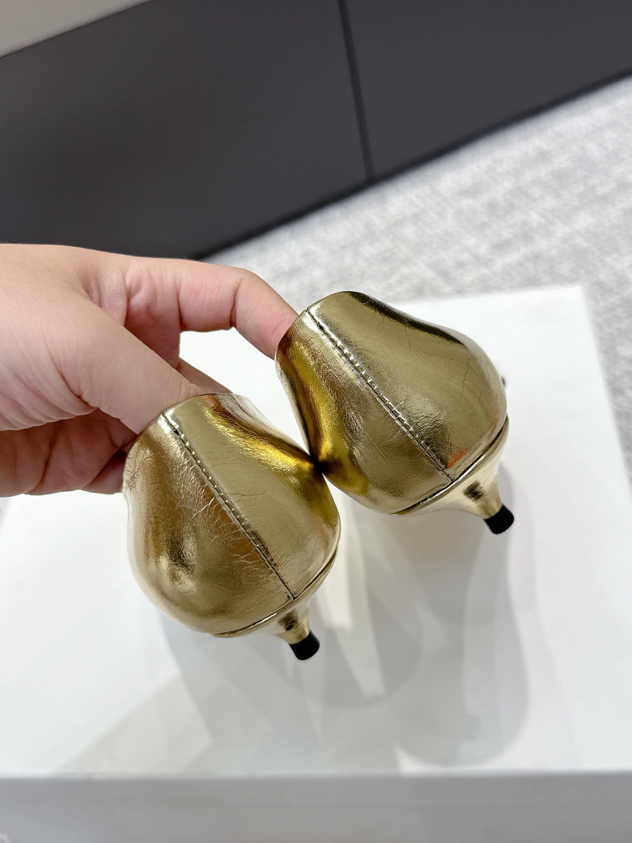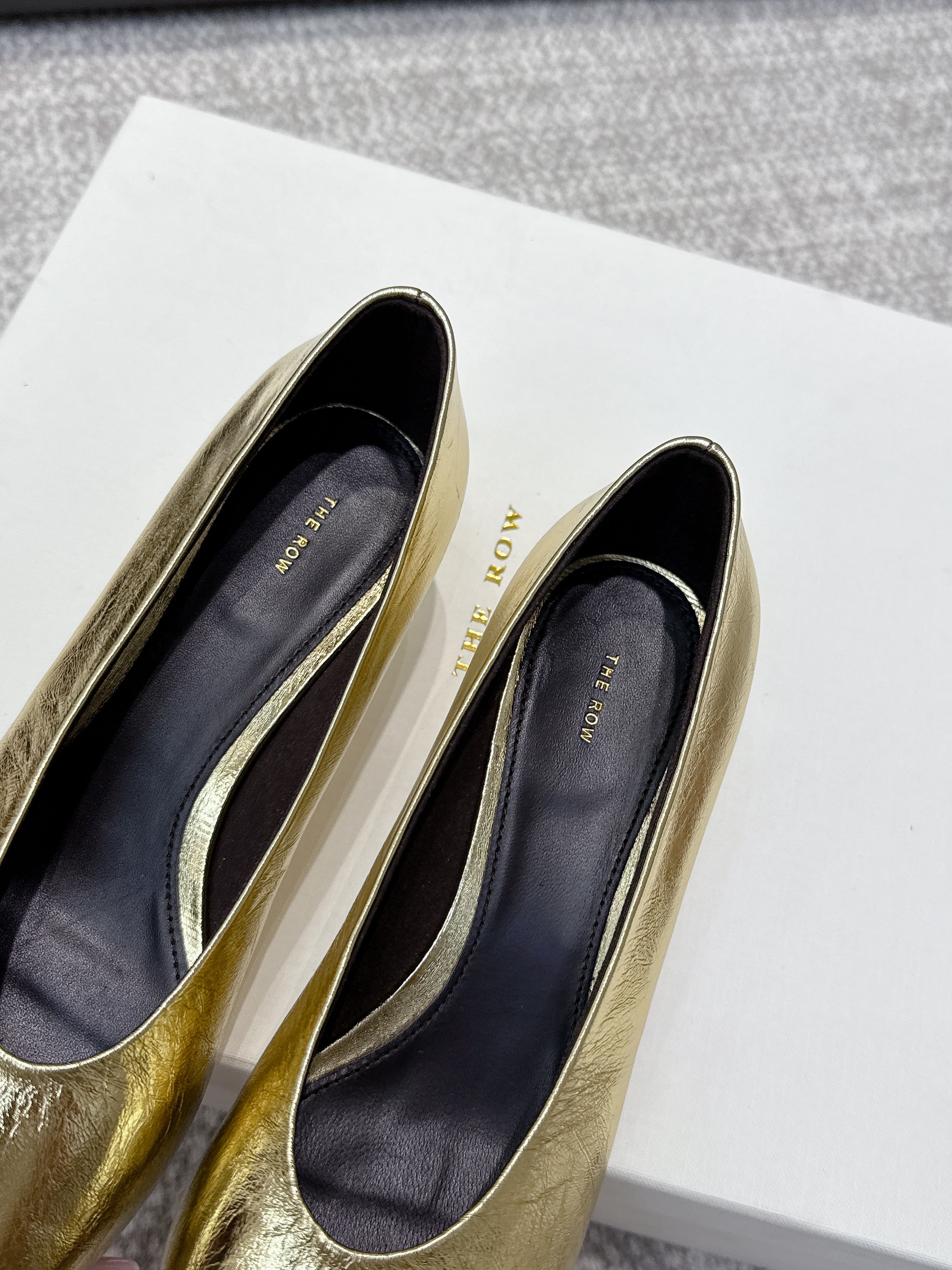 The Row 25ss TR Kitten heel Pointed Toe Shoes 35mm Gold Metallic Sheepskin 451306