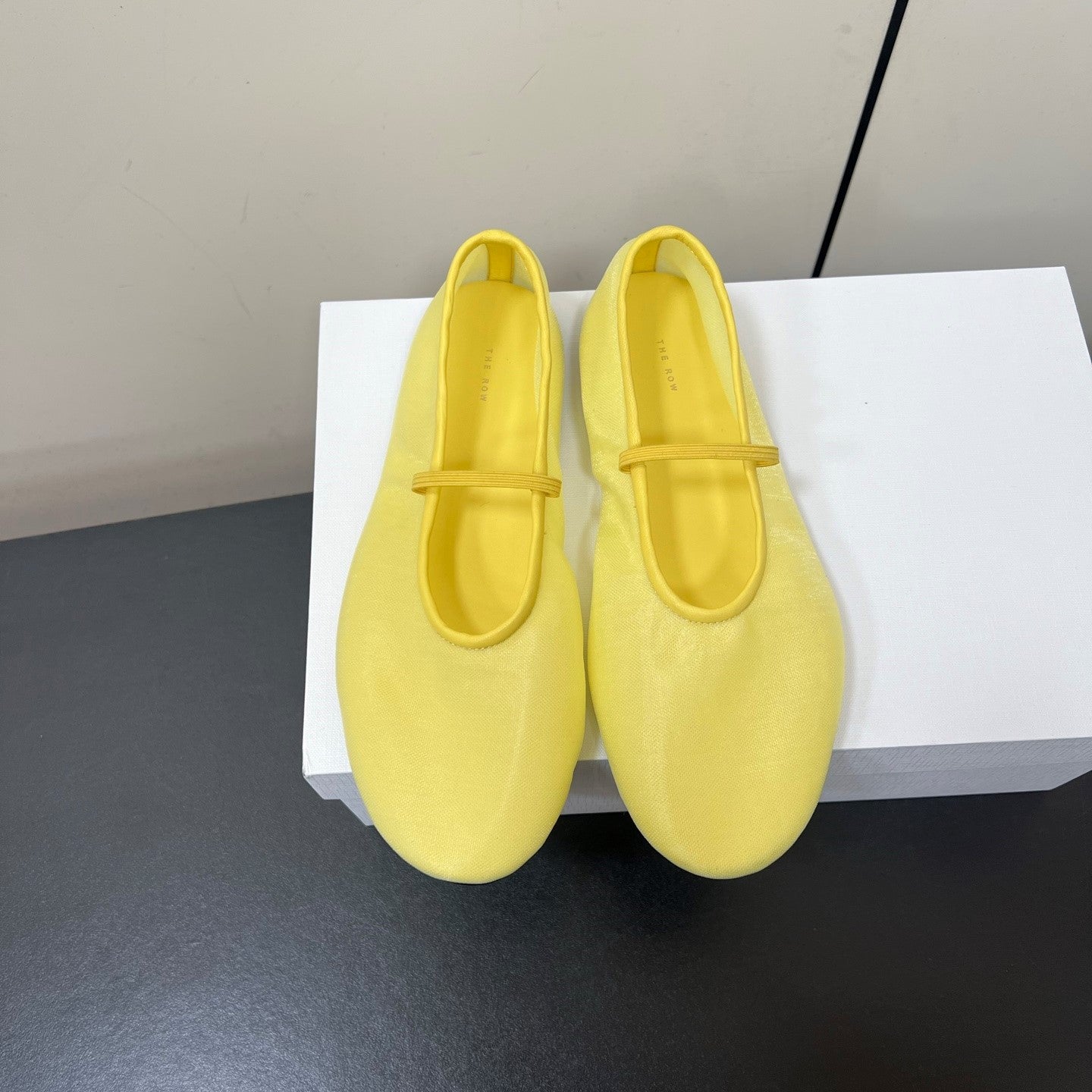 The Row Elastic Ballet Flats Light Yellow Lambskin 339987
