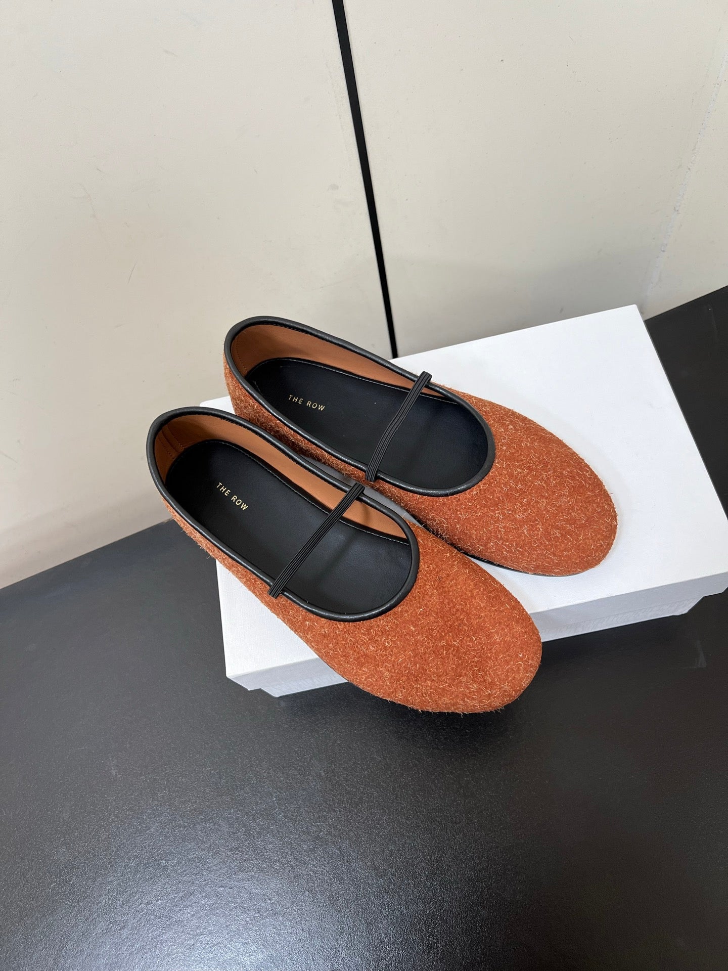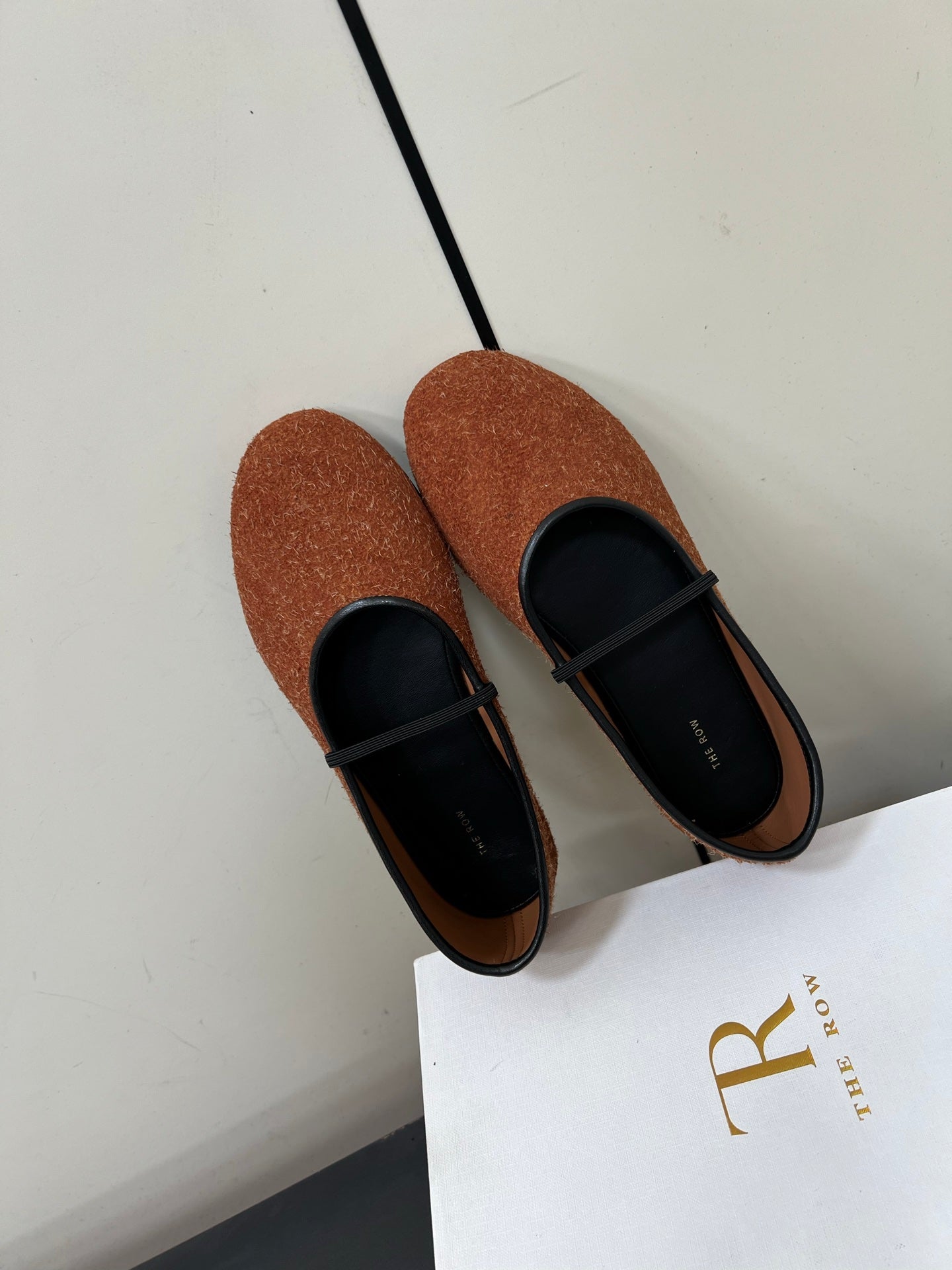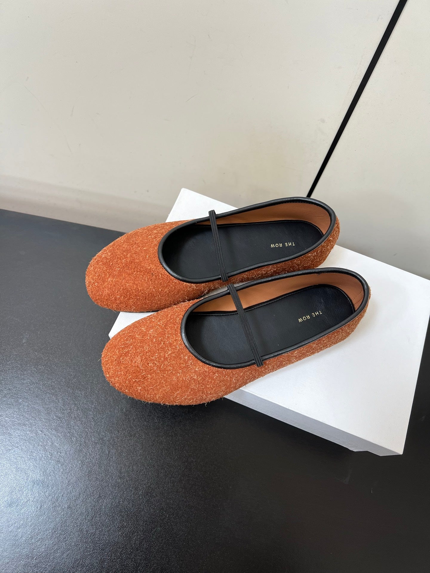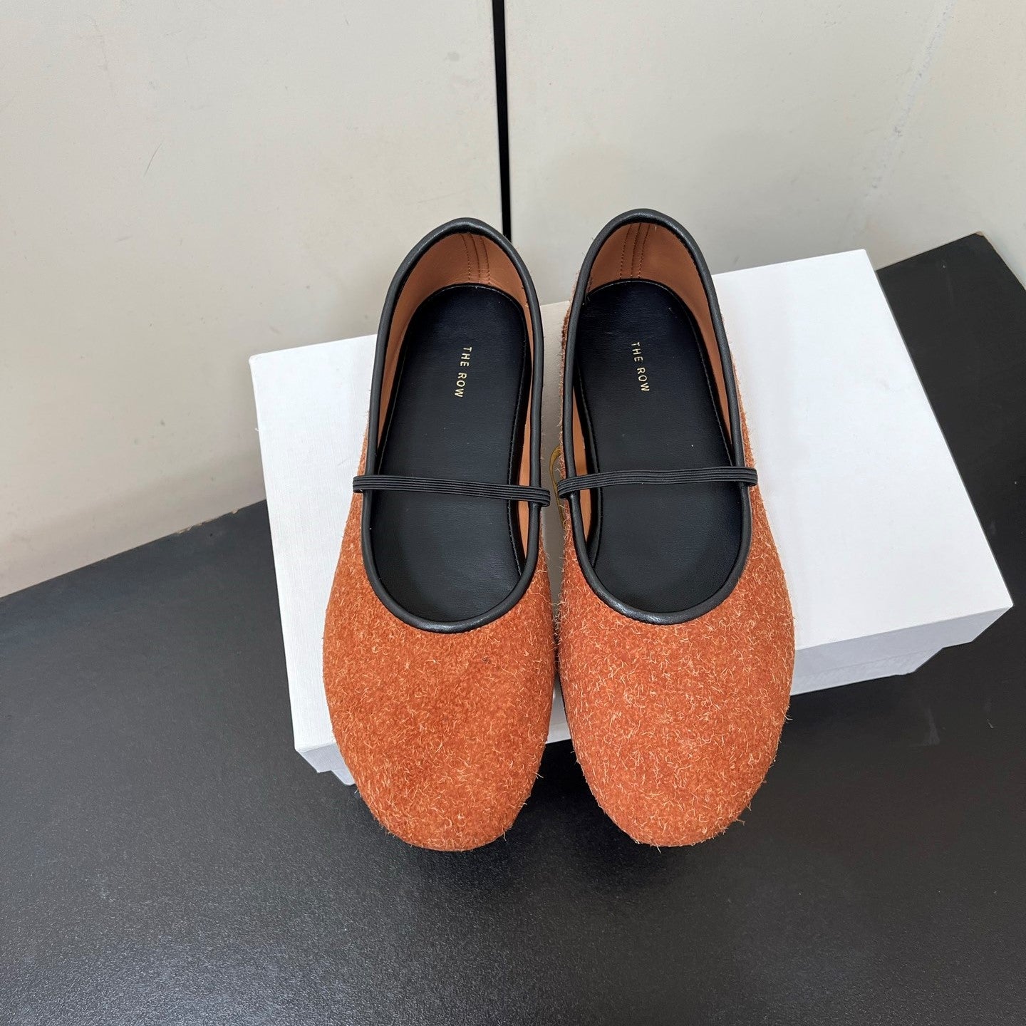 The Row Elastic Ballet Flats Rust Orange Sheepskin 339991