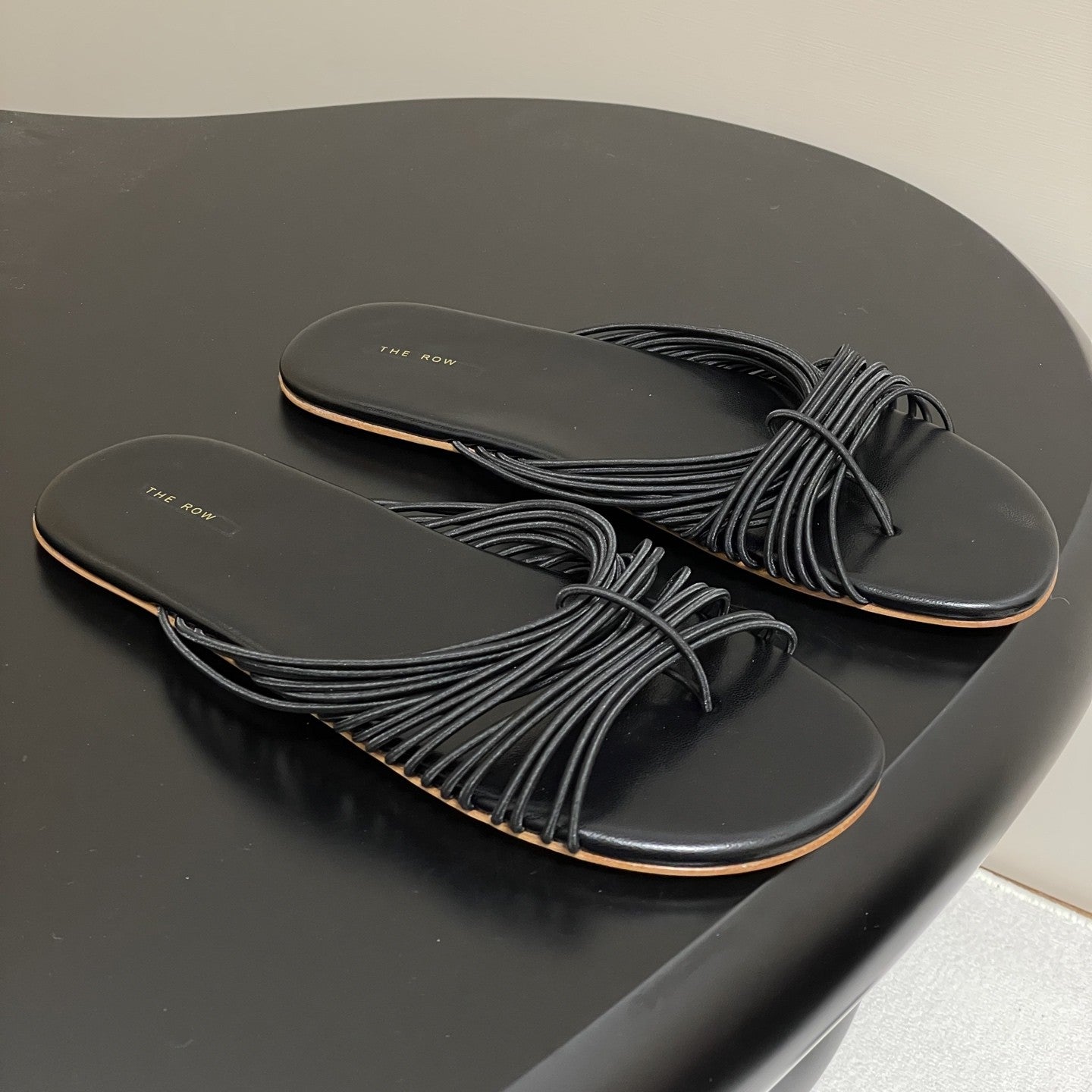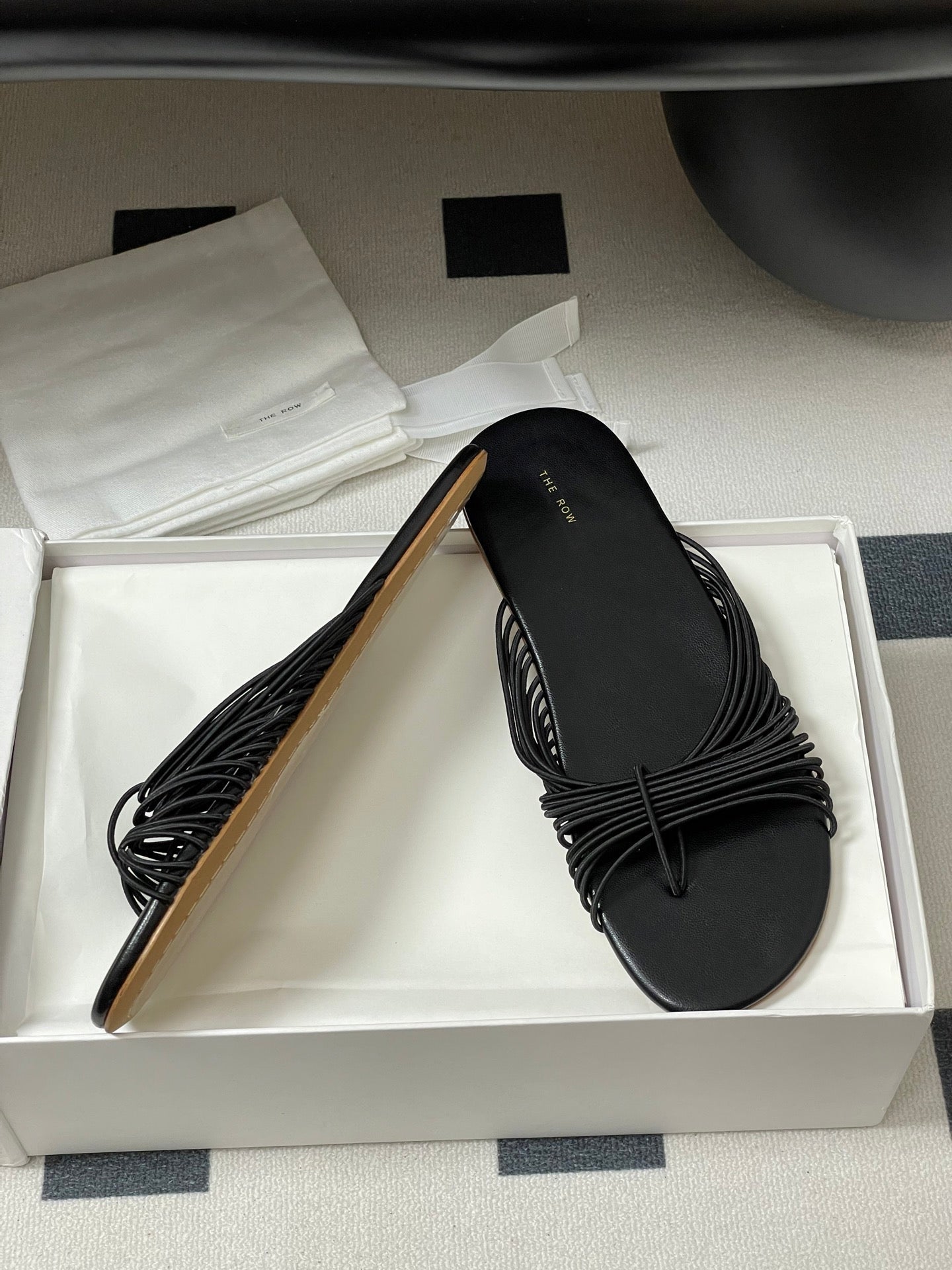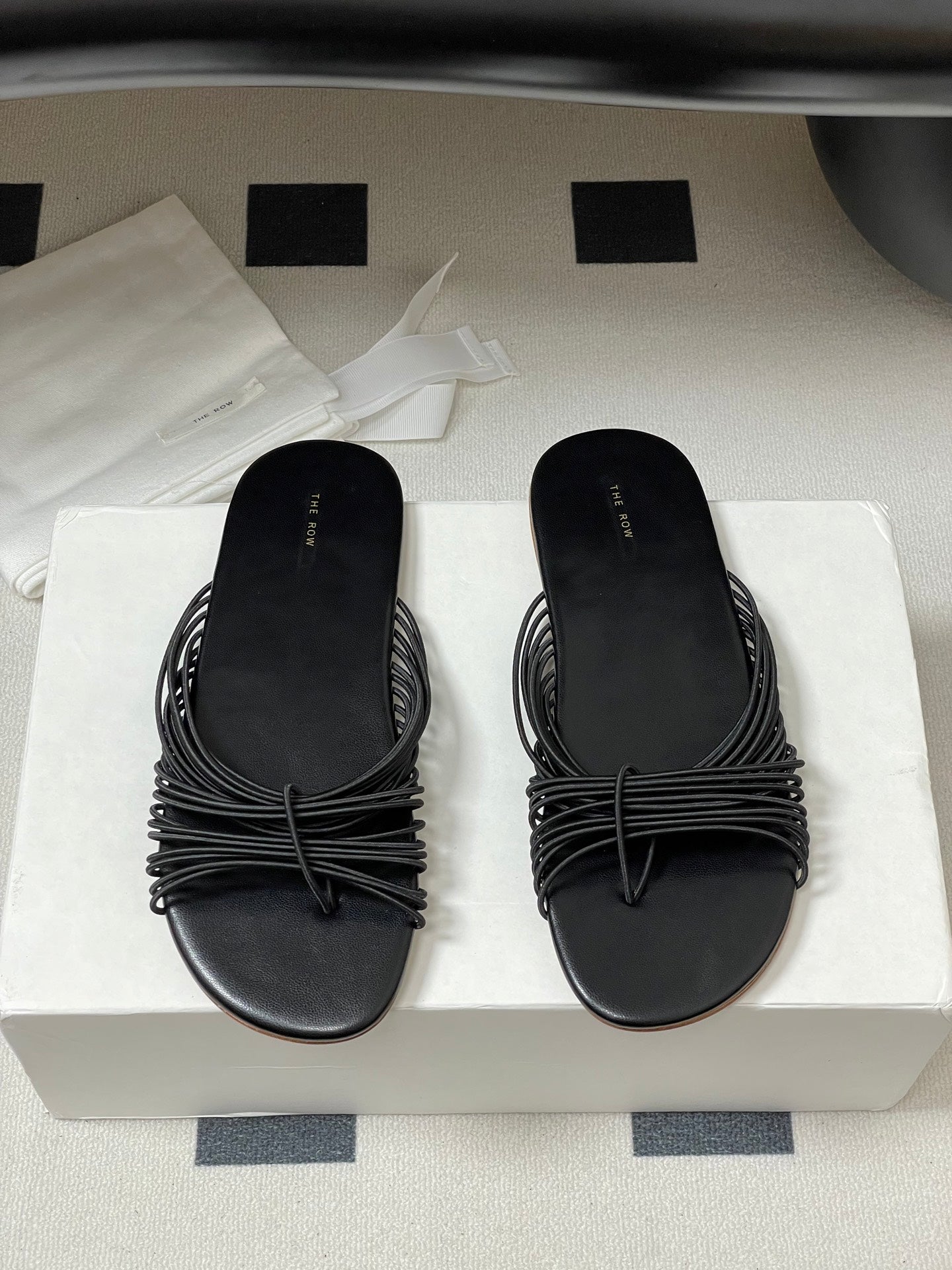 The Row Sara Slide Sandal In Black Elastic And Leather 345205