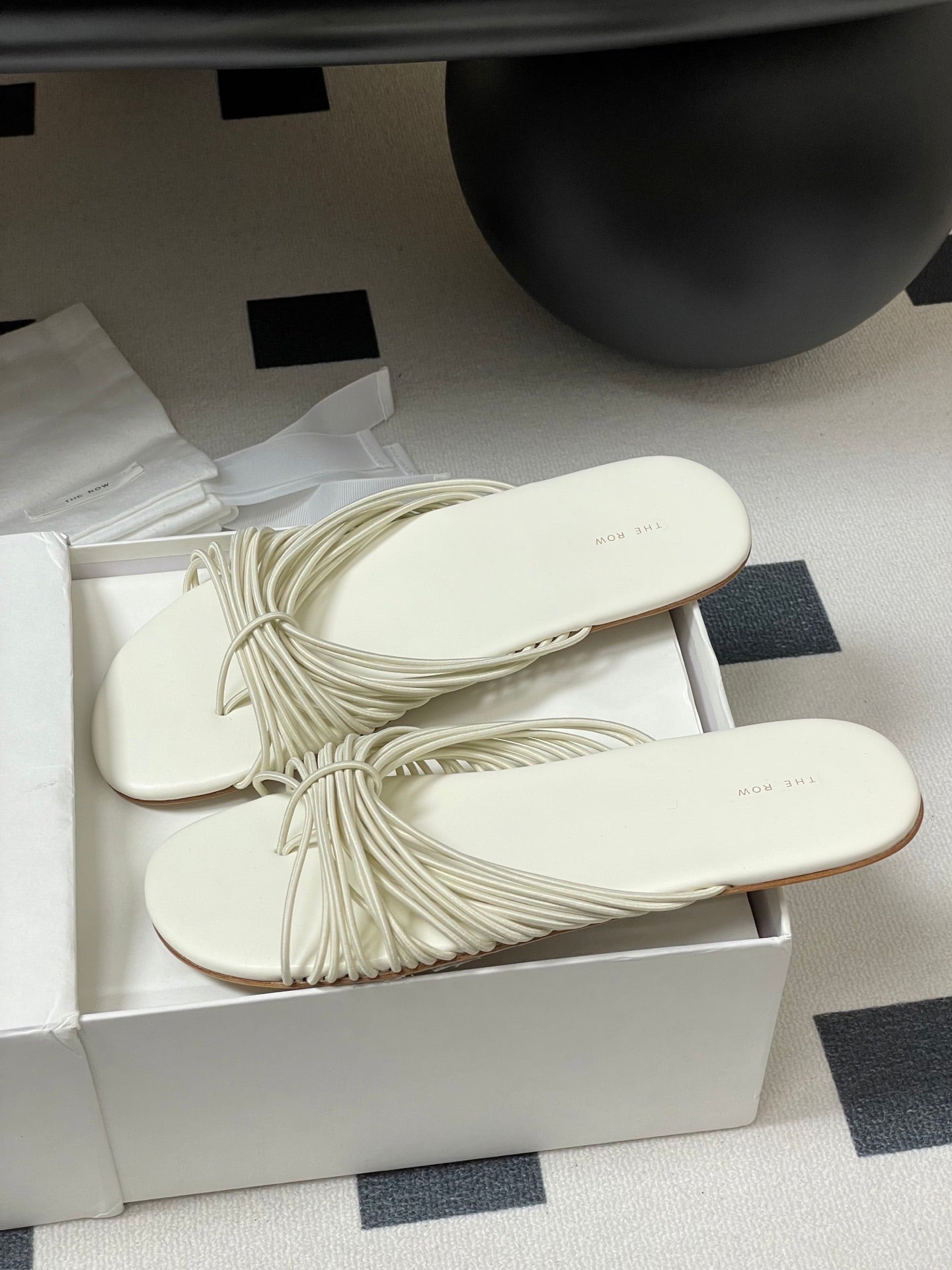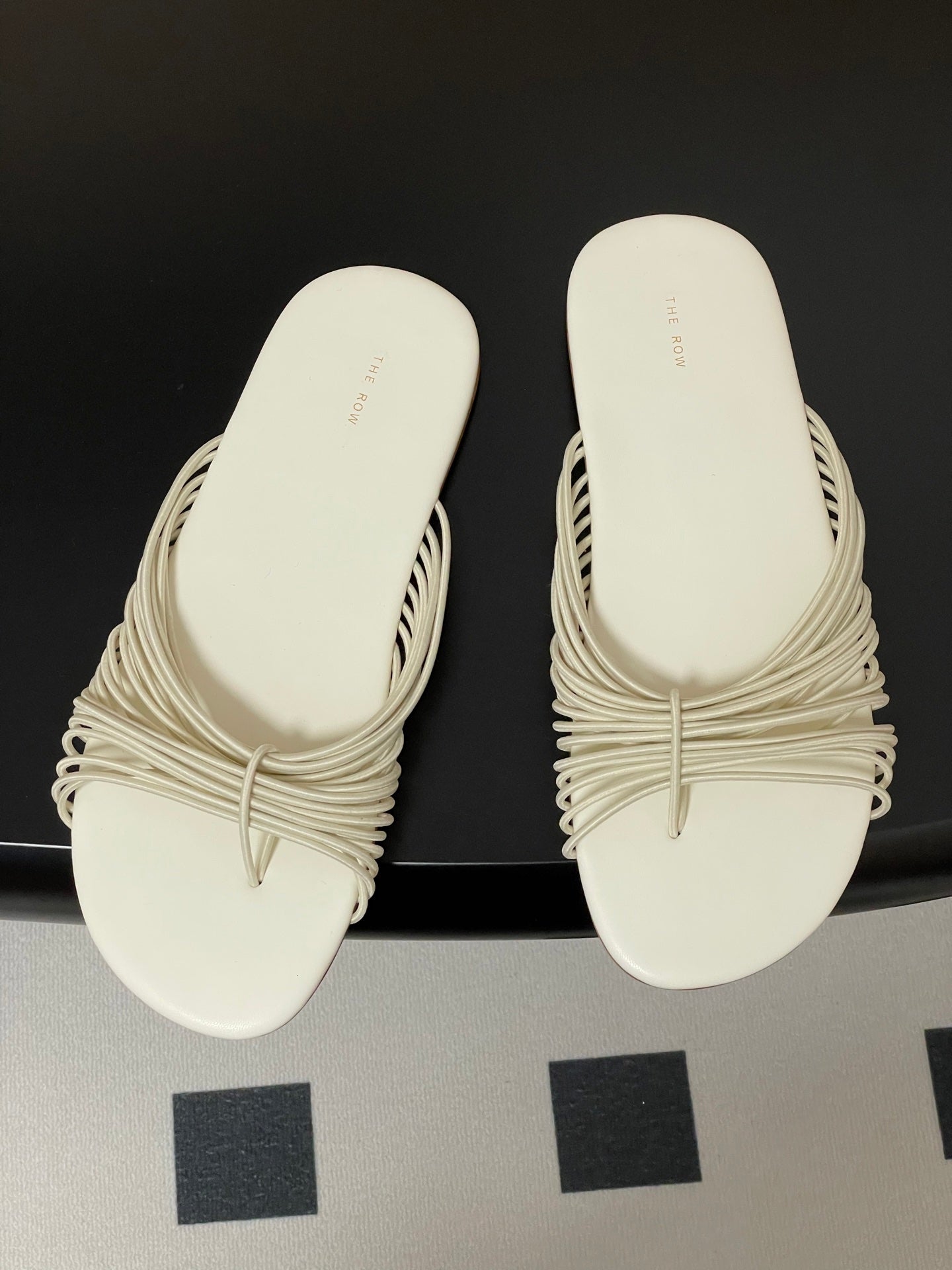 The Row Sara Slide Sandal In Ivory Elastic And Leather 345204