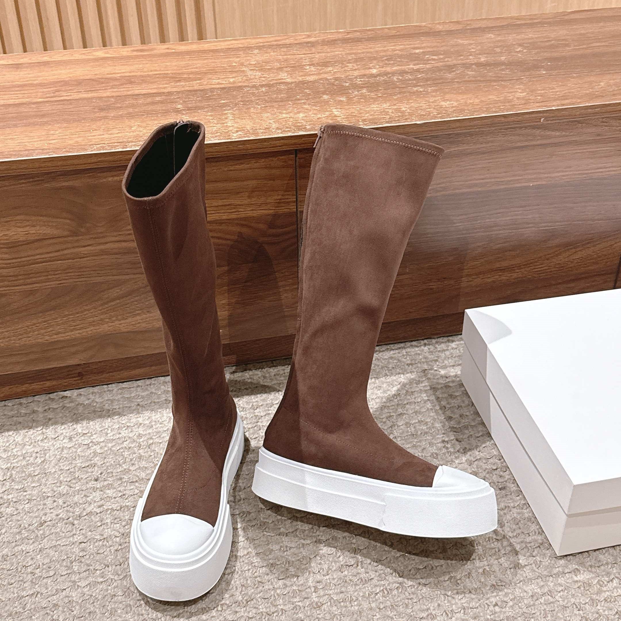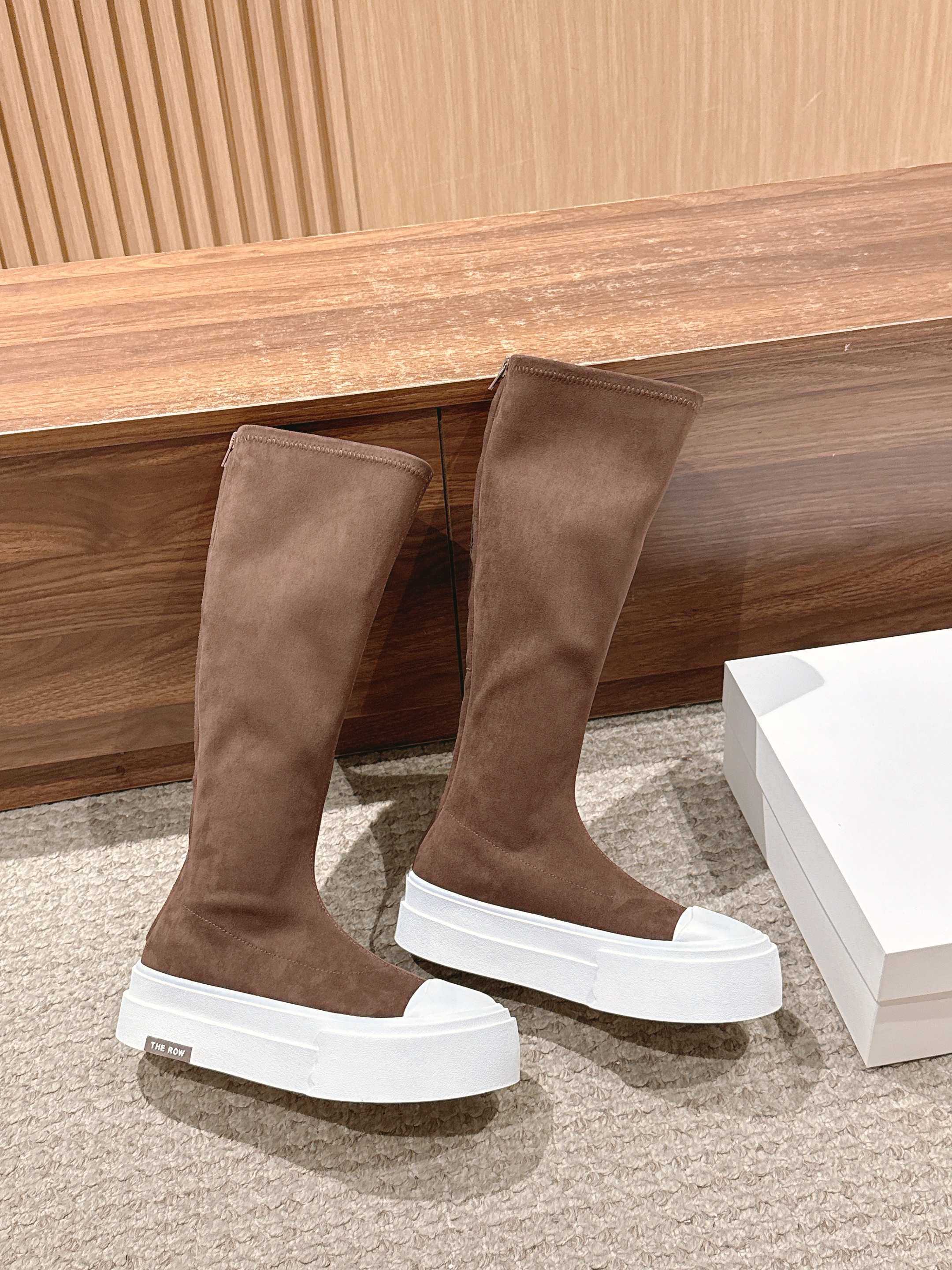 The Row Thick-soled Classic Knee-high Boots Brown White Suede 444171