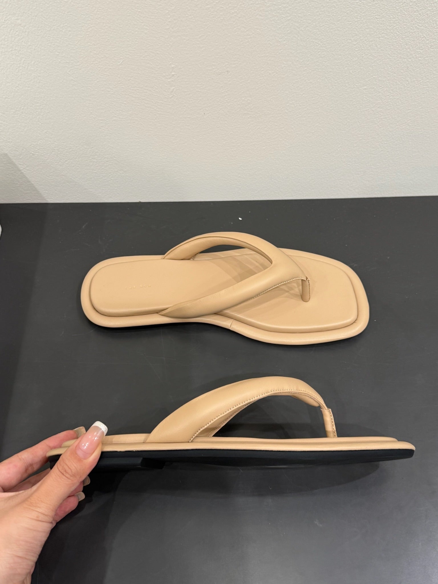 The Row Thong Sandal Beige Sheepskin 337478