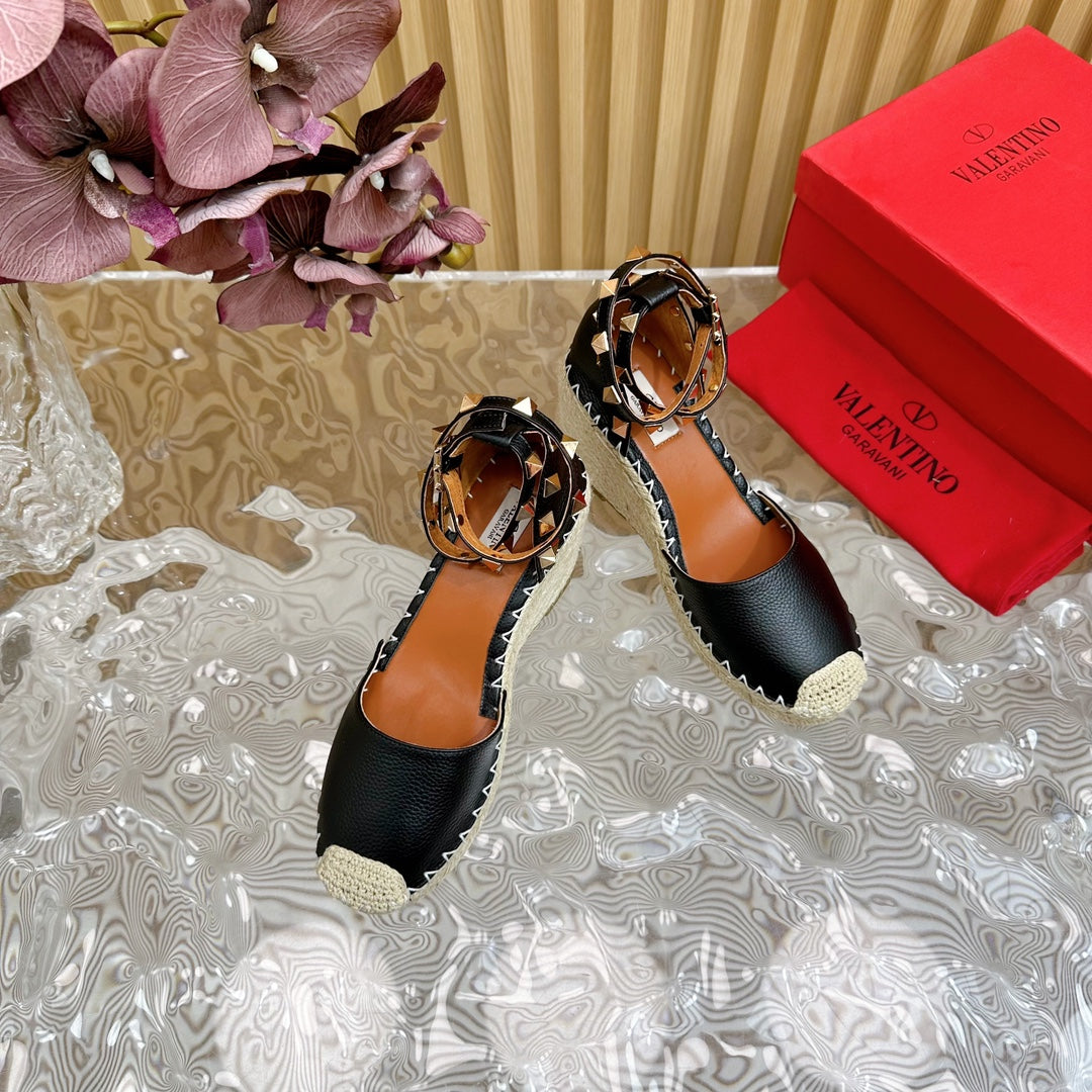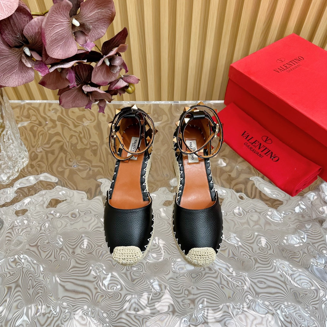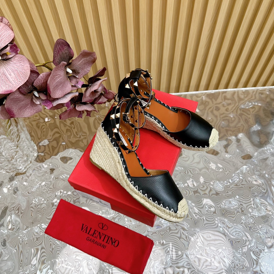 Valentino Rockstud Espadrille Sandals 95mm Black Leather 719189