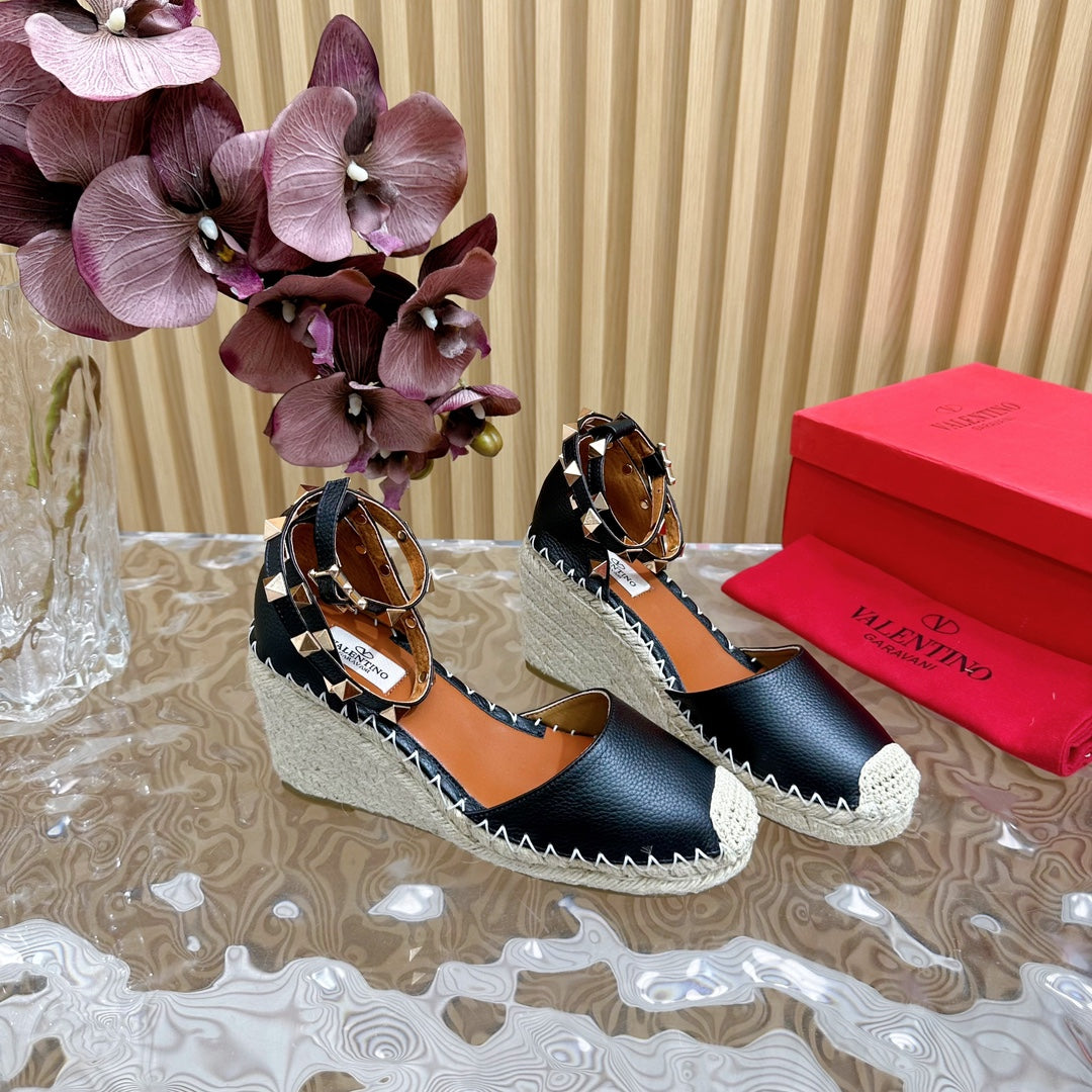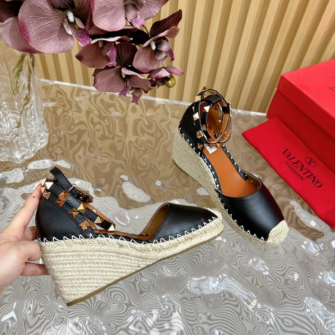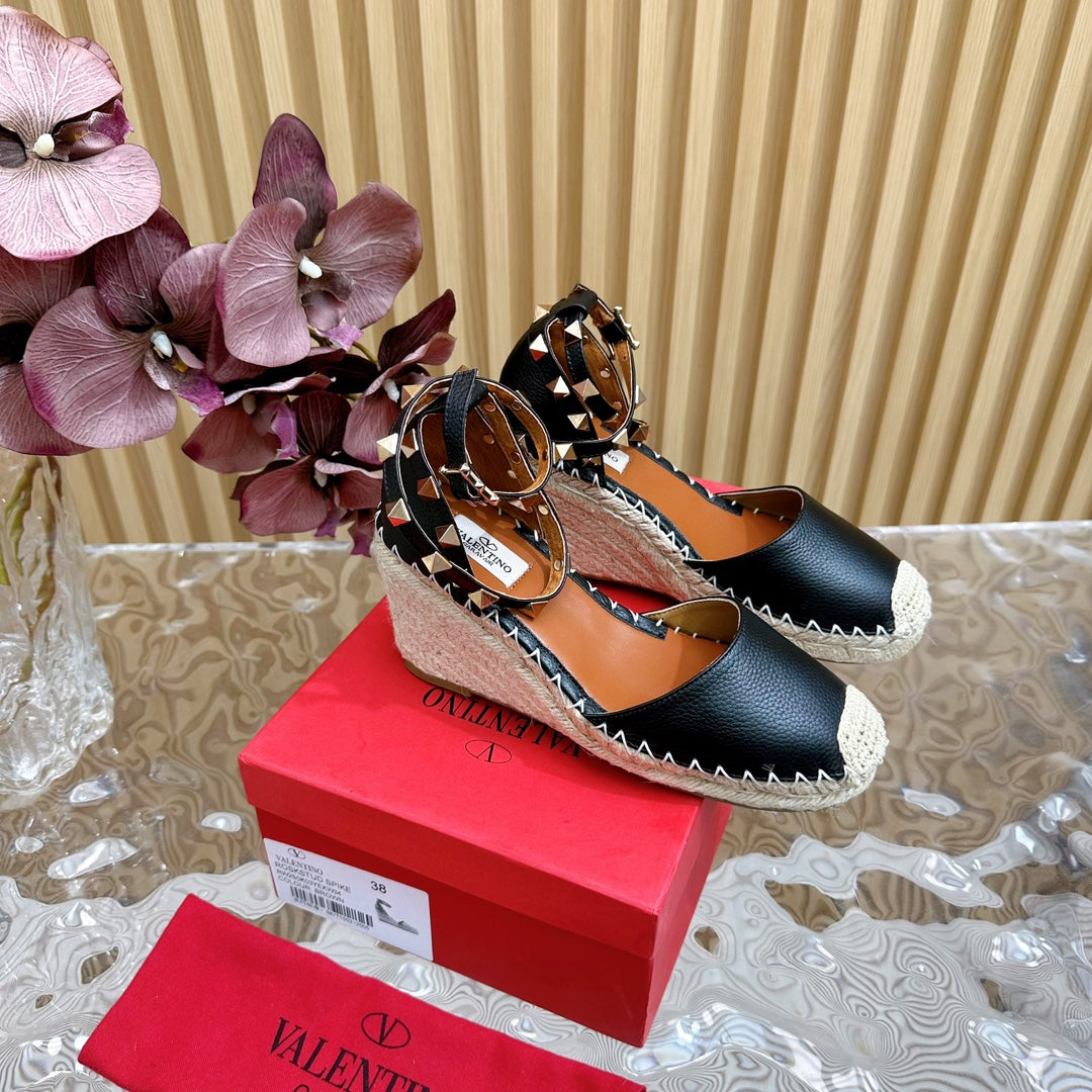Valentino Rockstud Espadrille Sandals 95mm Black Leather 719189