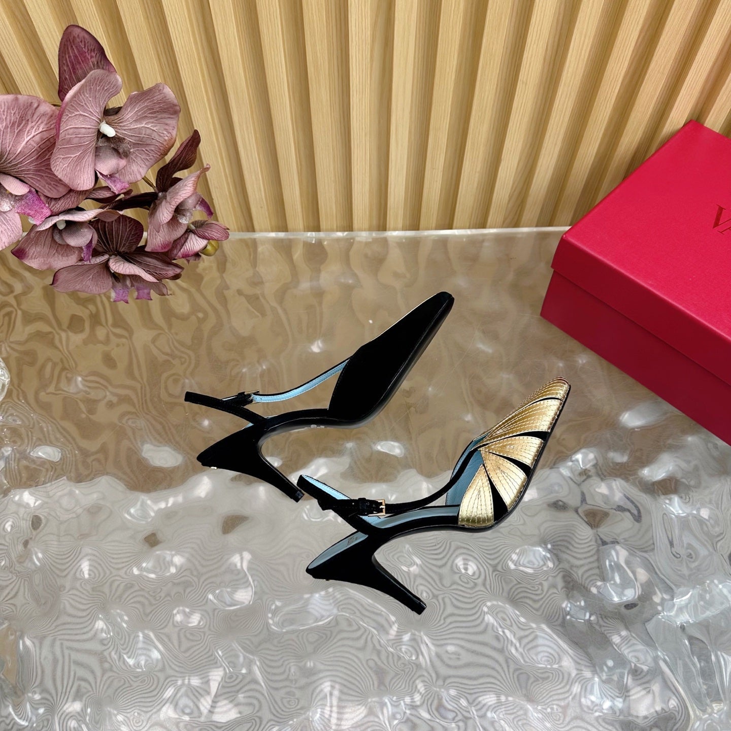 VT 25 Foil foliage Slingback Black Gold Cowhide
