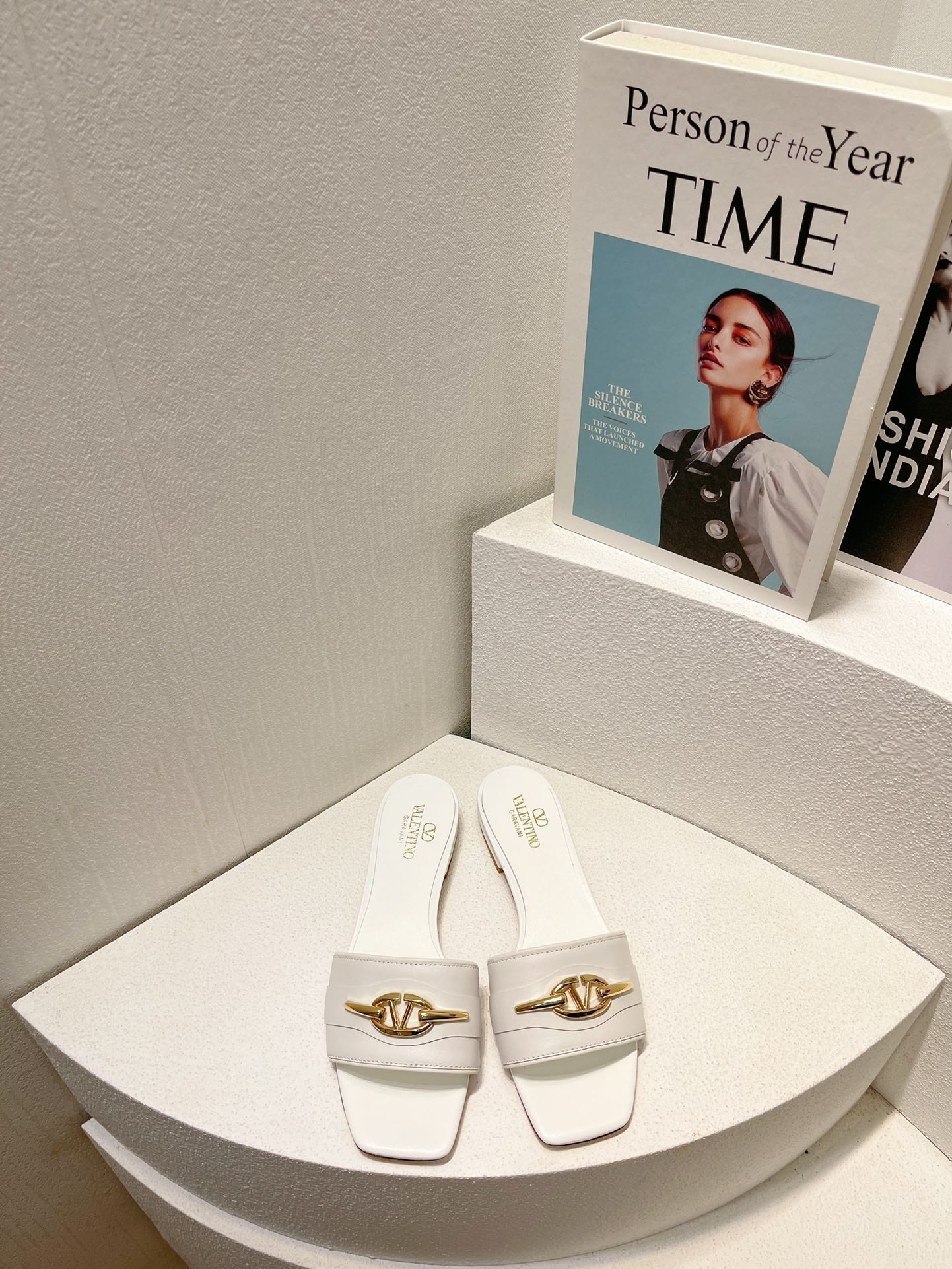 VT Moon Slides in Leather White Cowhide 292858